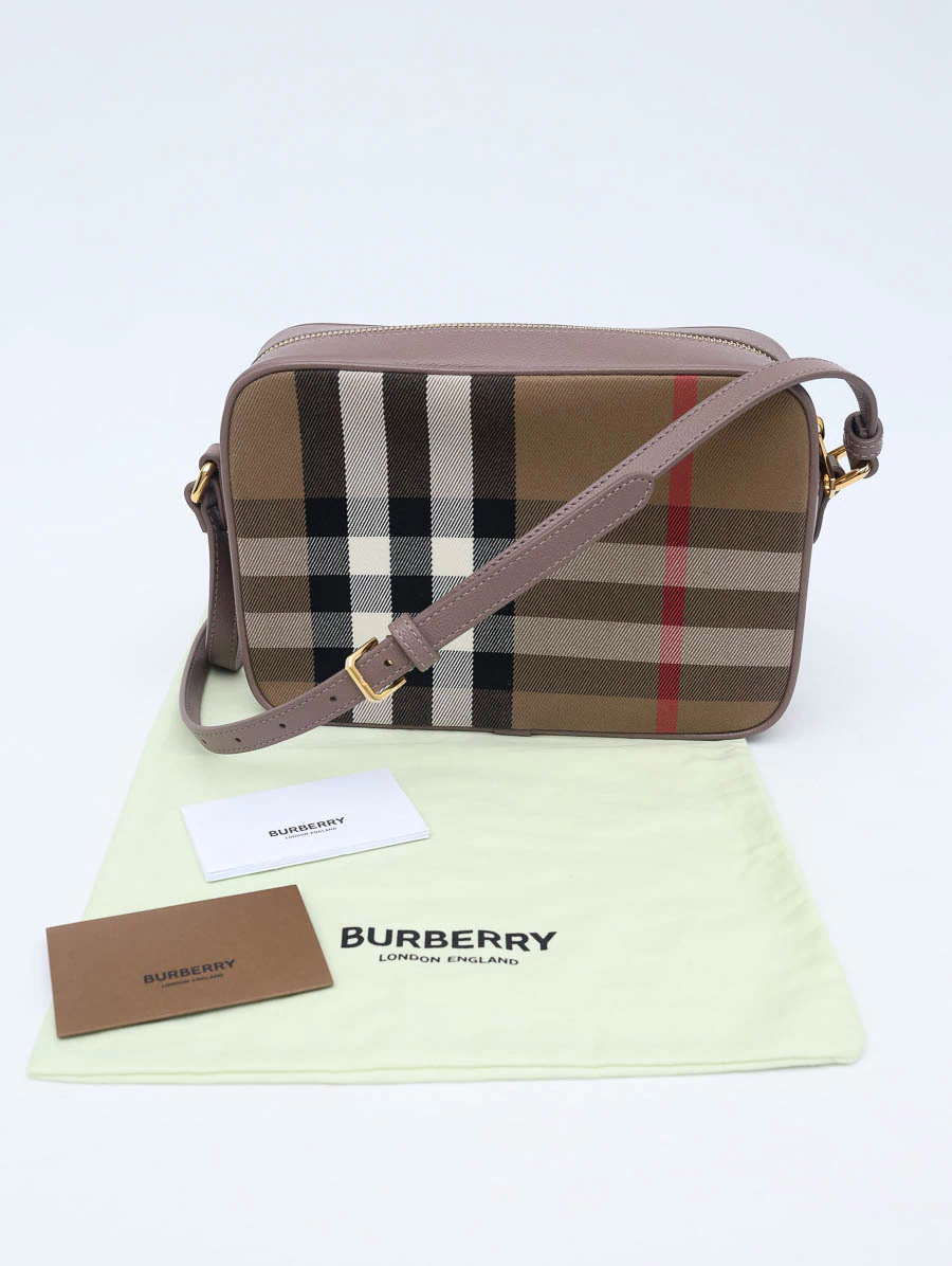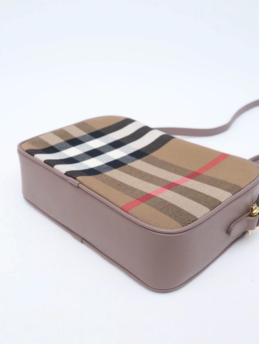 A Bolsa Original Burberry Check Camera Bag é uma fusão de estilo clássico e funcionalidade moderna, confeccionada em canvas com a icônica estampa xadrez da Burberry e detalhes em couro na elegante cor lavanda. A alça ajustável proporciona conforto e versatilidade, permitindo personalizar o comprimento conforme sua preferência. Seu interior espaçoso, especialmente para uma bolsa de tamanho médio, acomoda facilmente um celular de última geração, óculos de sol, carteira e utensílios pessoais. Esta bolsa combina praticidade e estilo, sendo o acessório perfeito para adicionar charme e eficiência ao seu dia a dia.
