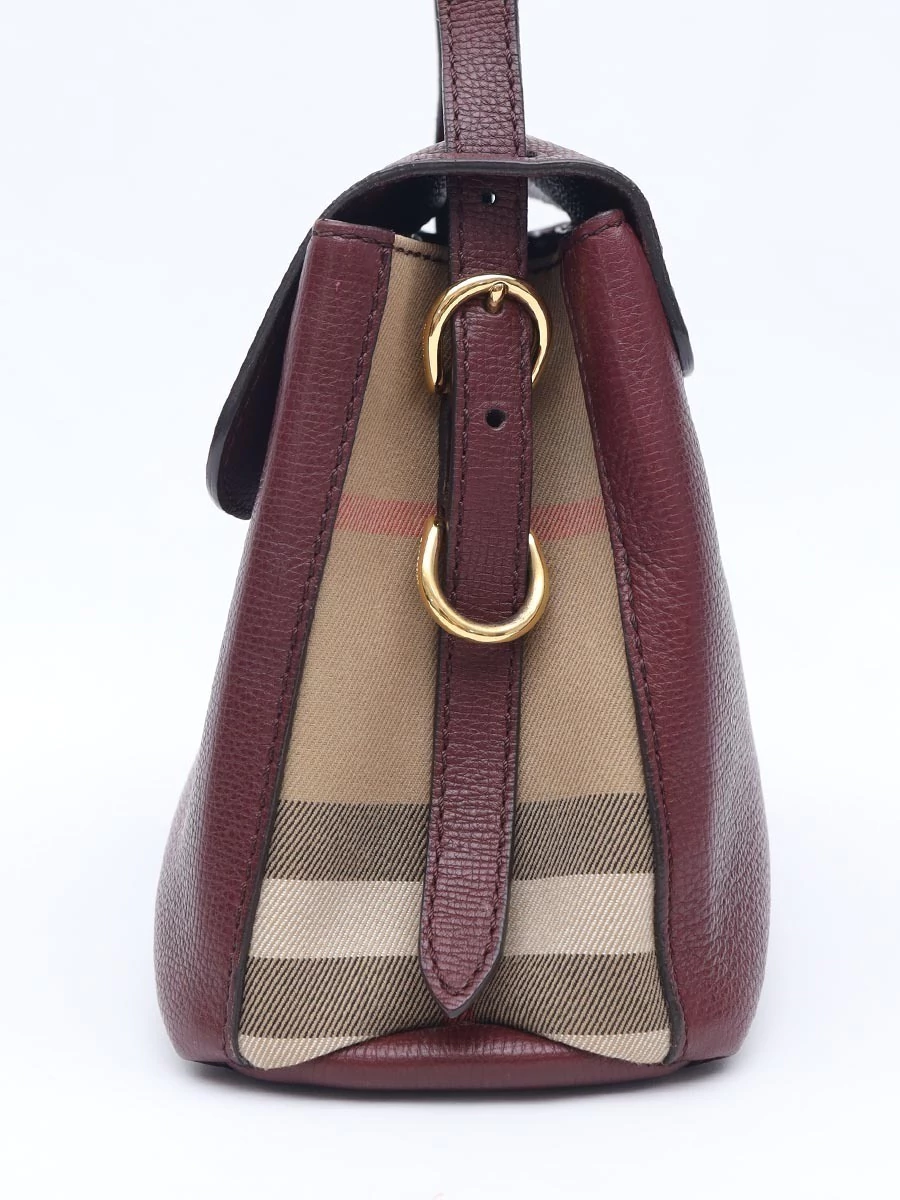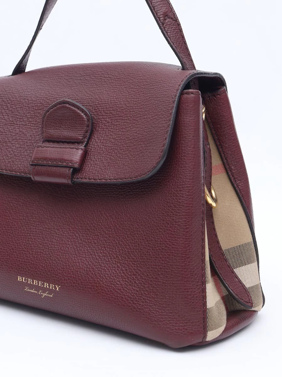 Procurando uma bolsa seminova maravilhosa da Burberry? A Bolsa Burberry Derby House Check é um modelo elegante e estruturado! Produzida em couro granulado na cor vinho com detalhes nas laterais na estampa clássica xadrez "Burberry House Check" e metais dourados, apresenta alça longa removível com ajuste de comprimento, alça de mão, abertura flap magnética e interior com três compartimentos e três bolsos.