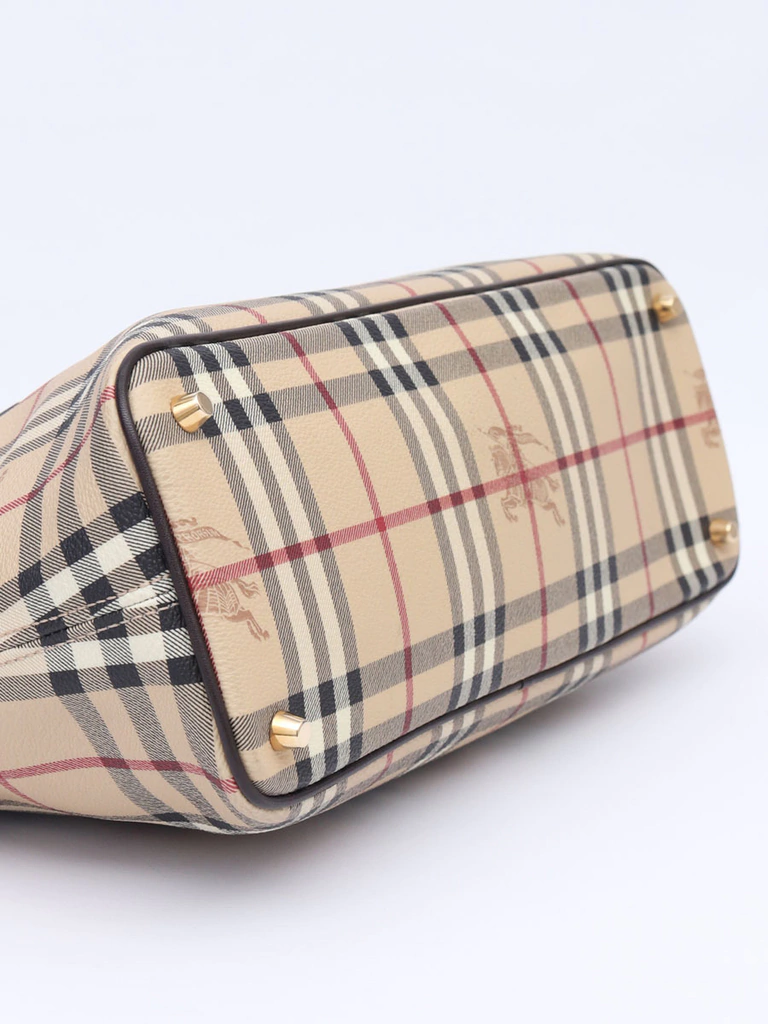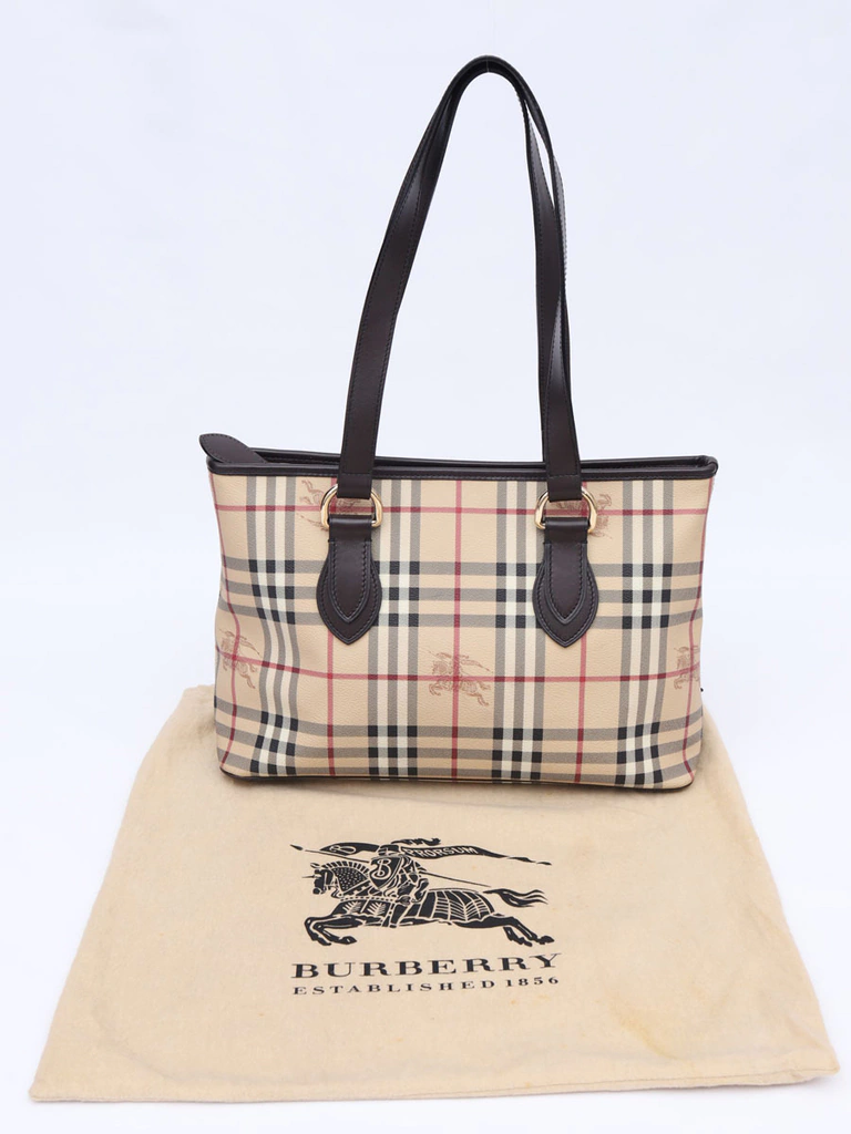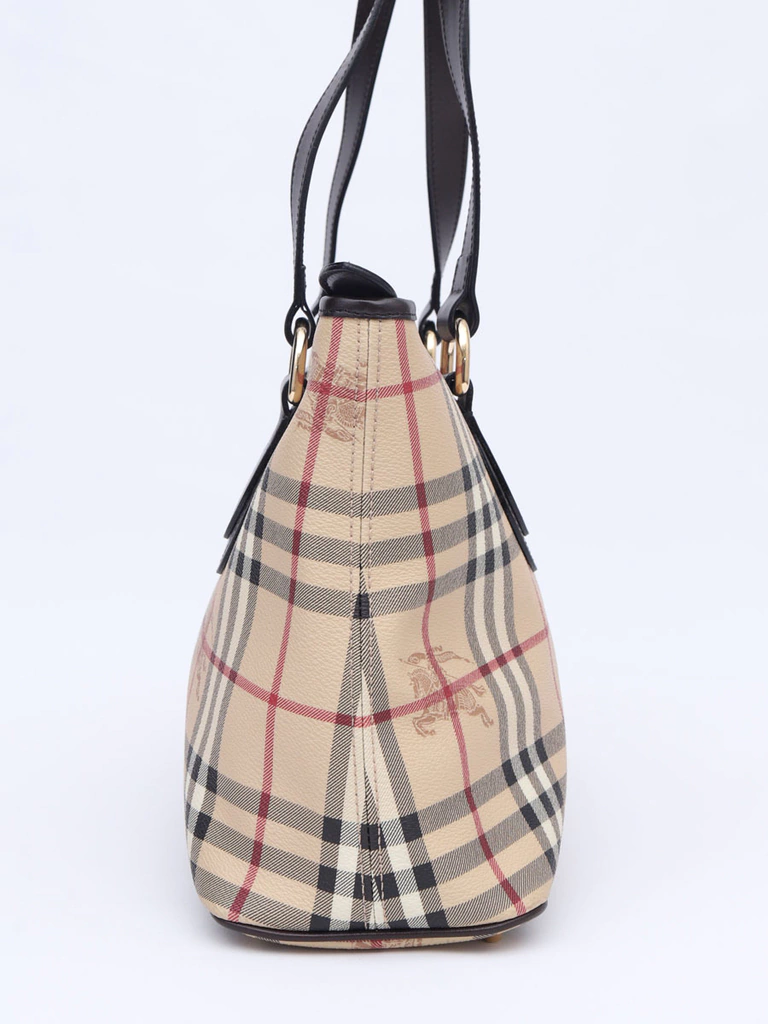 A bolsa Autêntica Burberry Haymarket Check Tote é uma bolsa de ombro perfeita para ser usada todos os dias. Com estampa clássica xadrez "Burberry Haymarket Check" em lona sintética de alta durabilidade "canvas" e detalhes em couro ébano, possui abertura superior com zíper, pés em metal dourado, interior super espaçoso com três bolsos.
