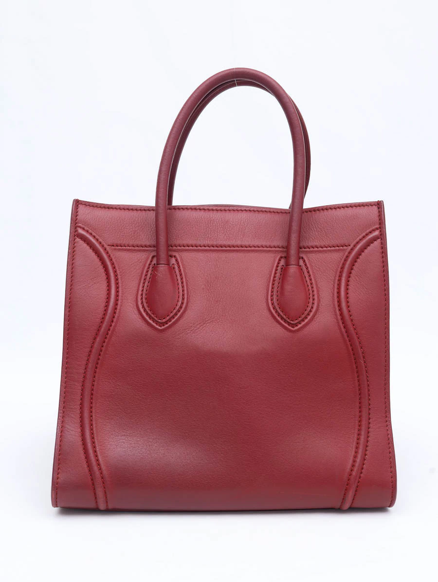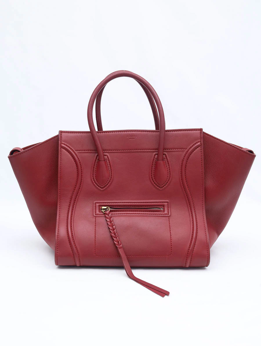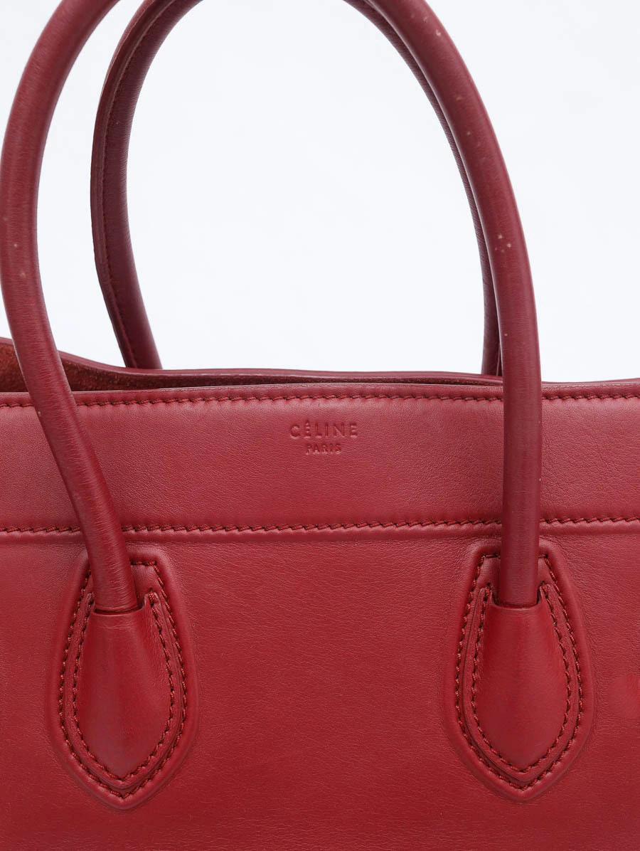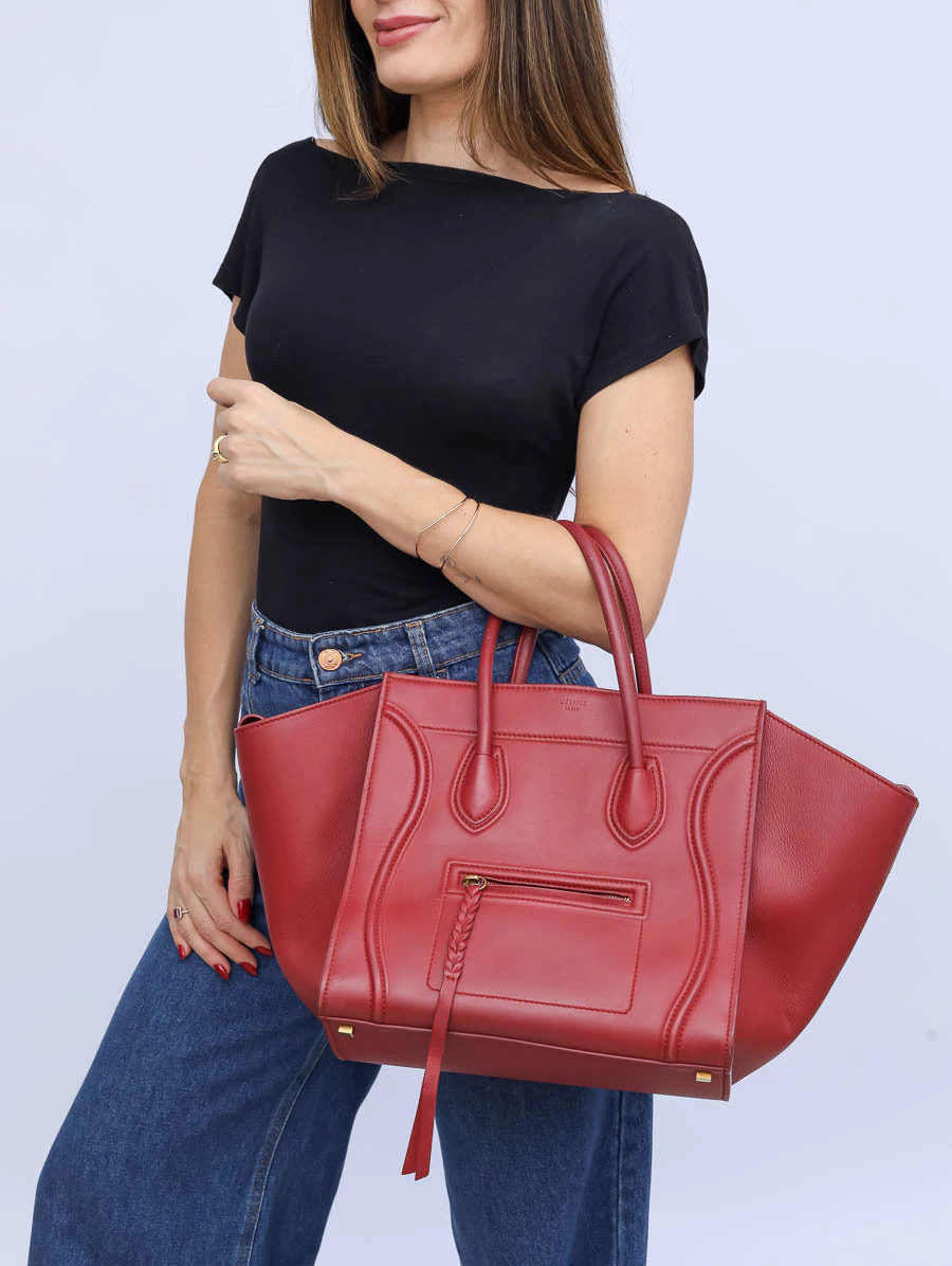 Bolsa Seminova Original Celine Luggage Phantom produzida em couro vermelho. O modelo apresenta duas alças de ombro, design trapézio, abertura superior com zíper e interior aveludado super espaçoso.