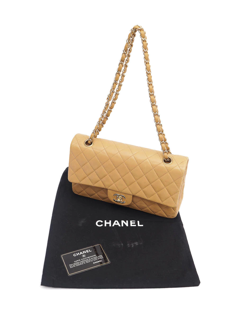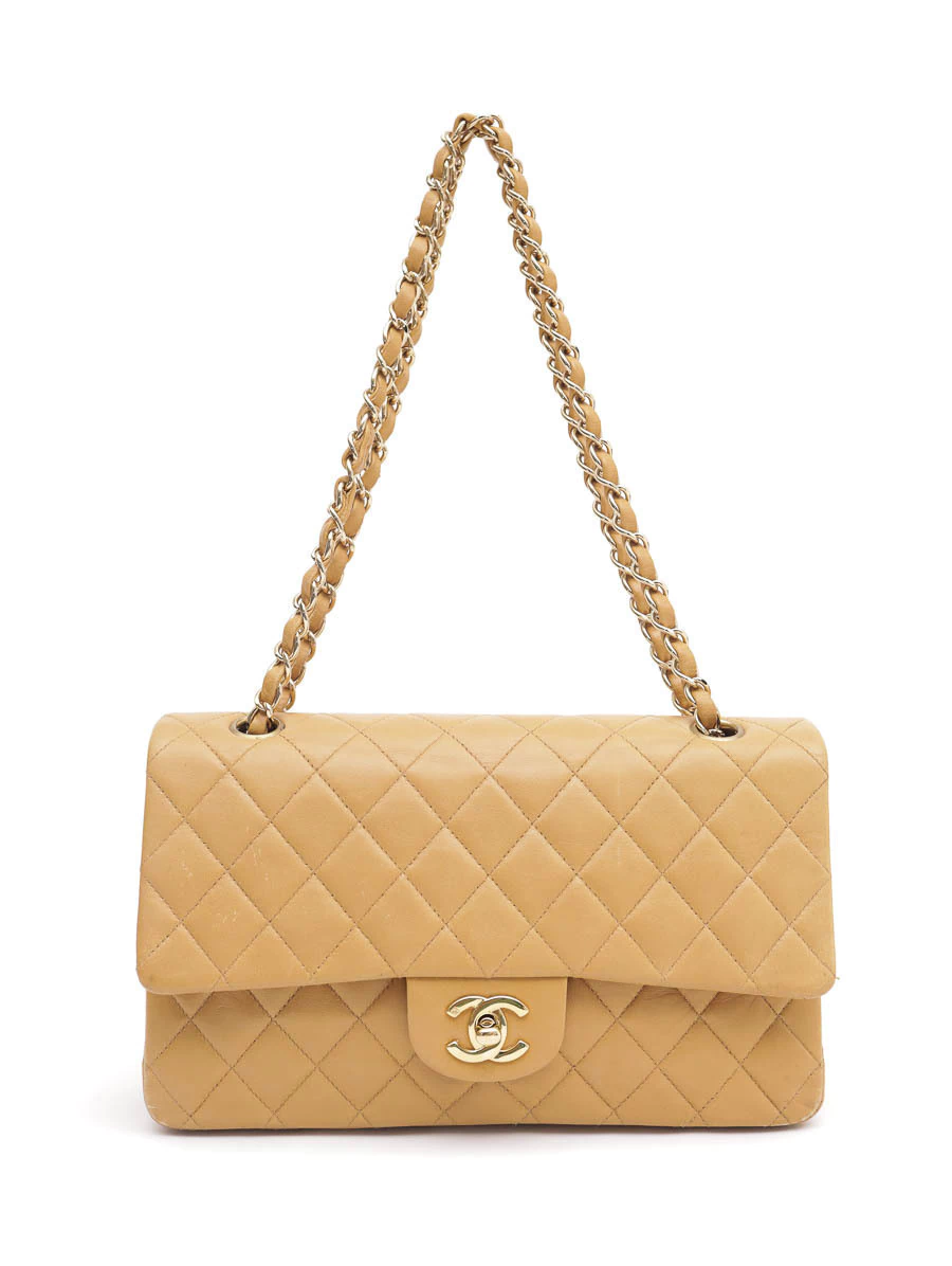 Modelo: Bolsa Chanel Lambskin Bege Duble Flap.