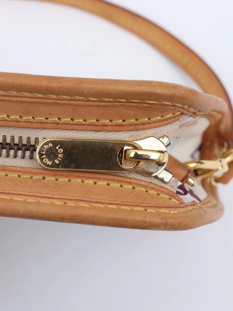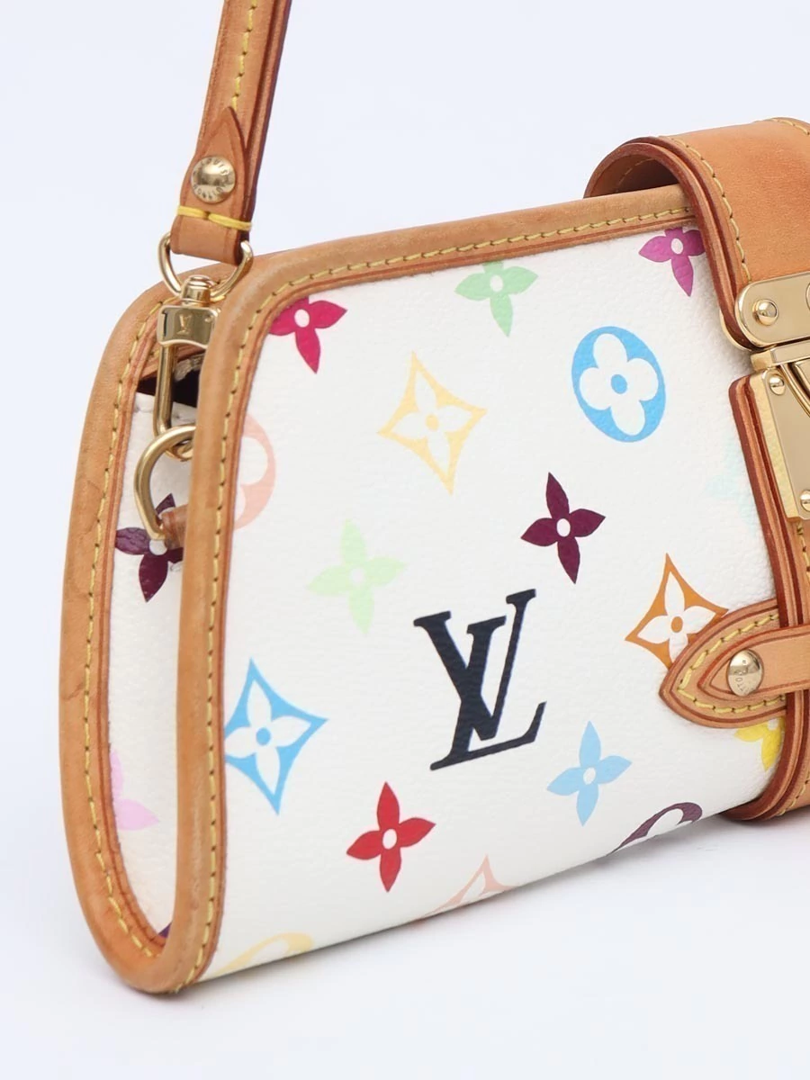 A Autêntica Bolsa Clutch Louis Vuitton Shirley Multicolore é uma criação de edição limitada super cult. Apresenta o padrão LV Monograma em cores vibrantes e detalhes em couro LV Vachetta, fechamento através de fecho de encaixe, abertura superior com zíper, alça de ombro removível e interior aveludado.