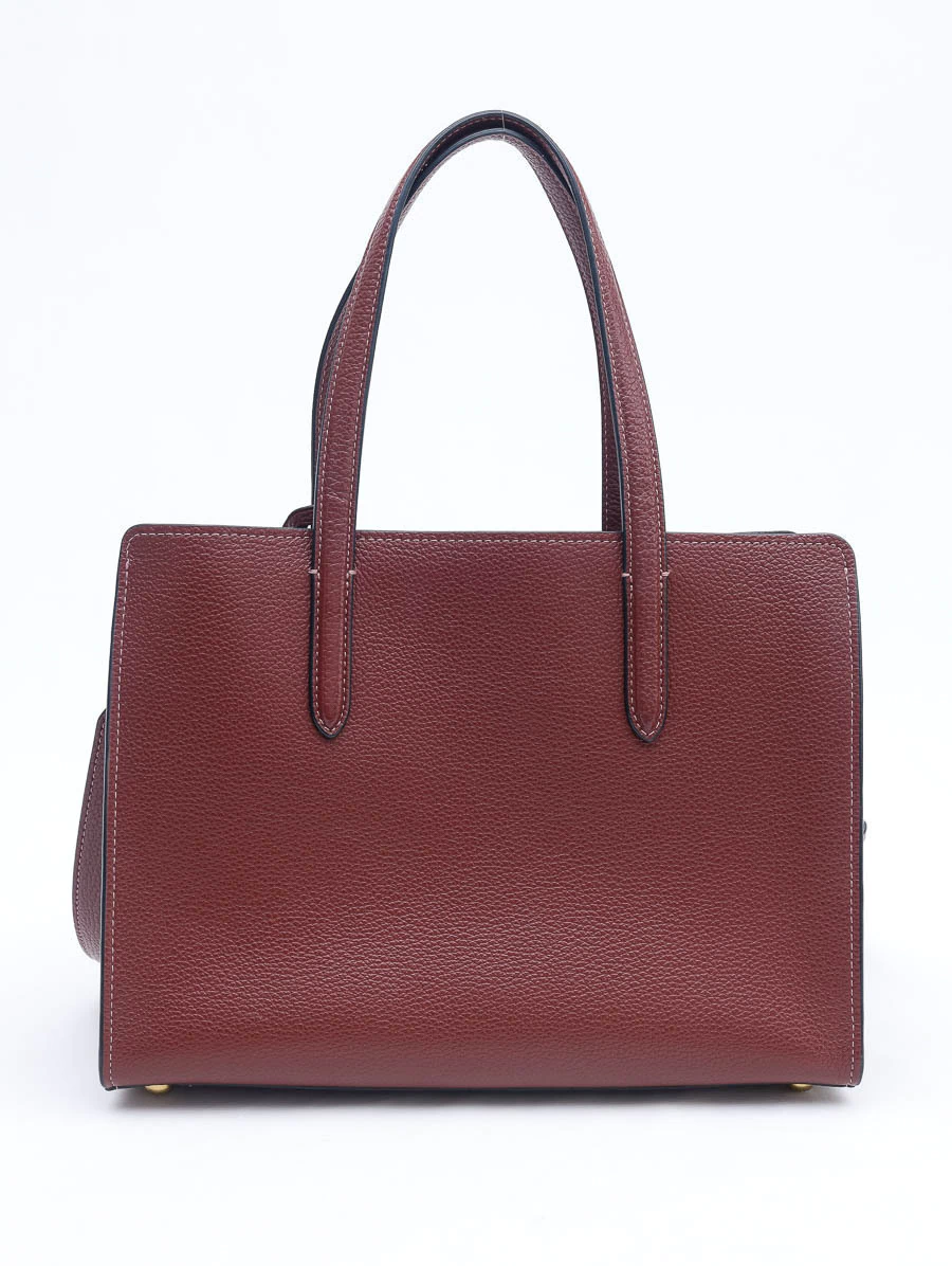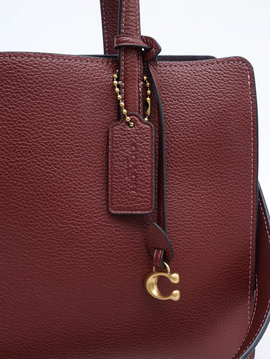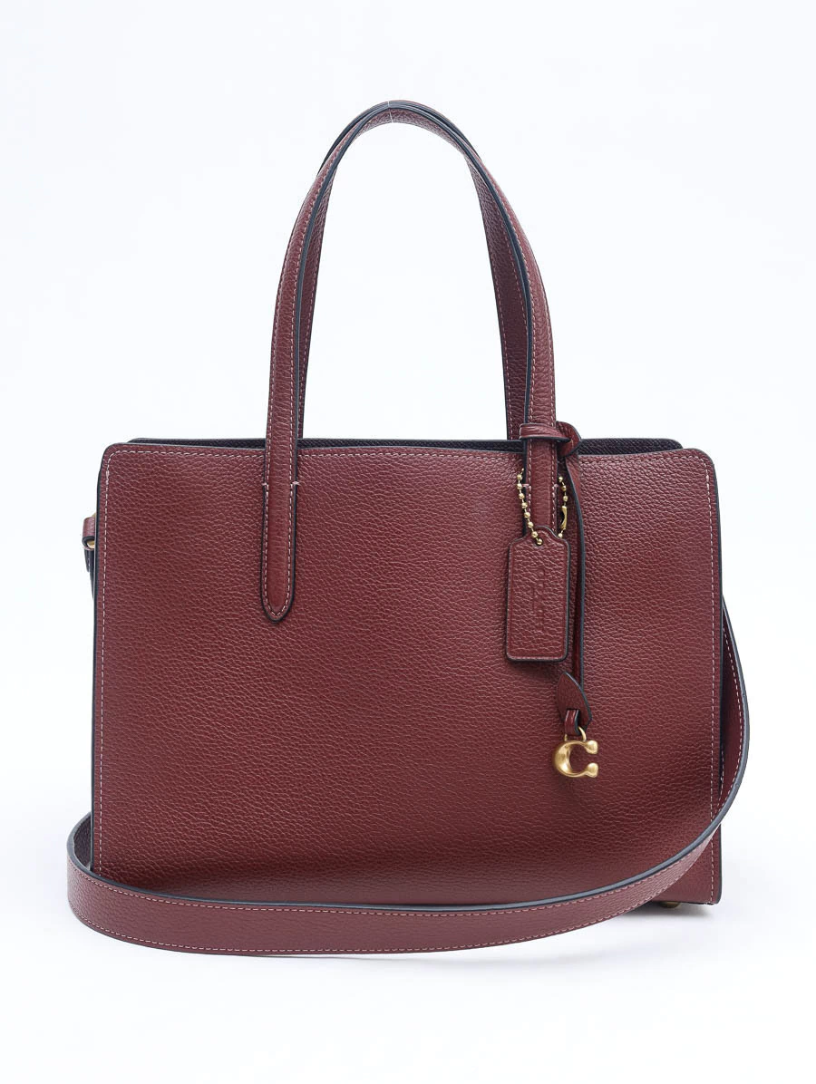 A Bolsa Coach Carryall Satchelé a escolha perfeita para o seu dia a dia. Produzida em couro com textura granulada na cor bordô e metais dourados. Apresenta alça longa removível com ajuste de comprimento, duas alças de mão, dois compartimentos abertos (um deles tendo um bolso interno) e um com zíper.
