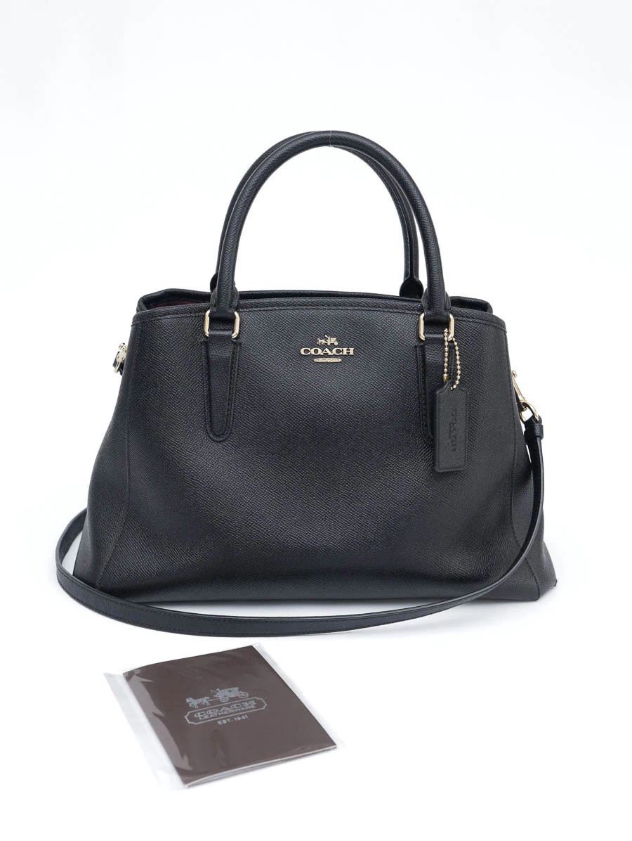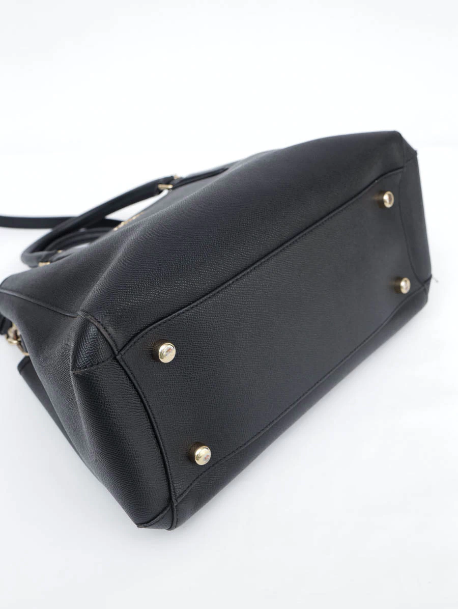 Bolsa Original Coach Grained Leather Satchelproduzida em couro granulado na cor preta e ferragens douradas. Apresenta alças de mão, alça longa removível, abertura por fecho magnético, dois compartimentos, um bolso com zíper e tres bolsos abertos.