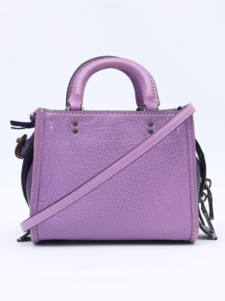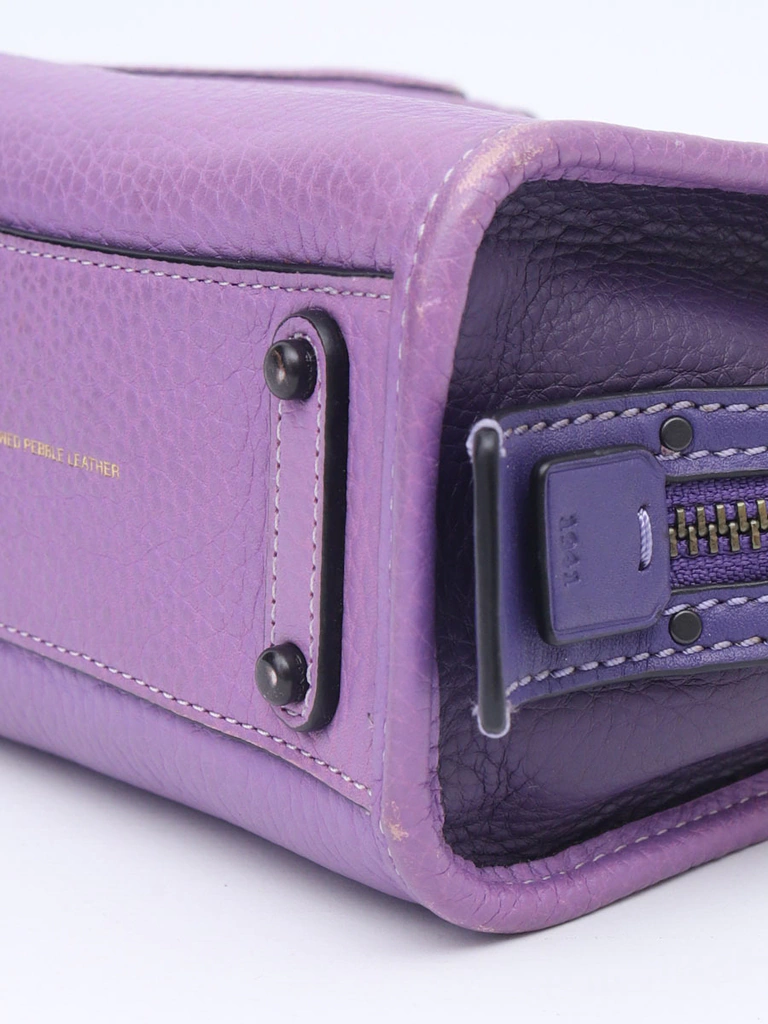 Bolsa Autêntica Coach Rogue 17 Colorblock produzida em couro Coach Glovetanned granulado na cor lilás, laterais na cor roxa e metais com banho preto fosco. Apresenta duas alças de mão, uma alça longa removível com ajuste de comprimento, dois compartimentos abertos, um compartimento central com zíper, um bolso interno com zíper e um slot para cartões. Uma bolsa luxuosa da marca Coach, rica em detalhes e materiais.