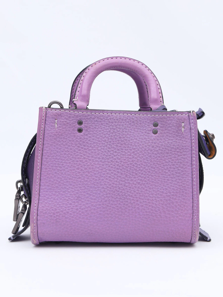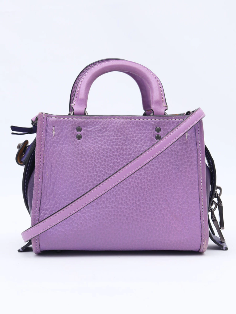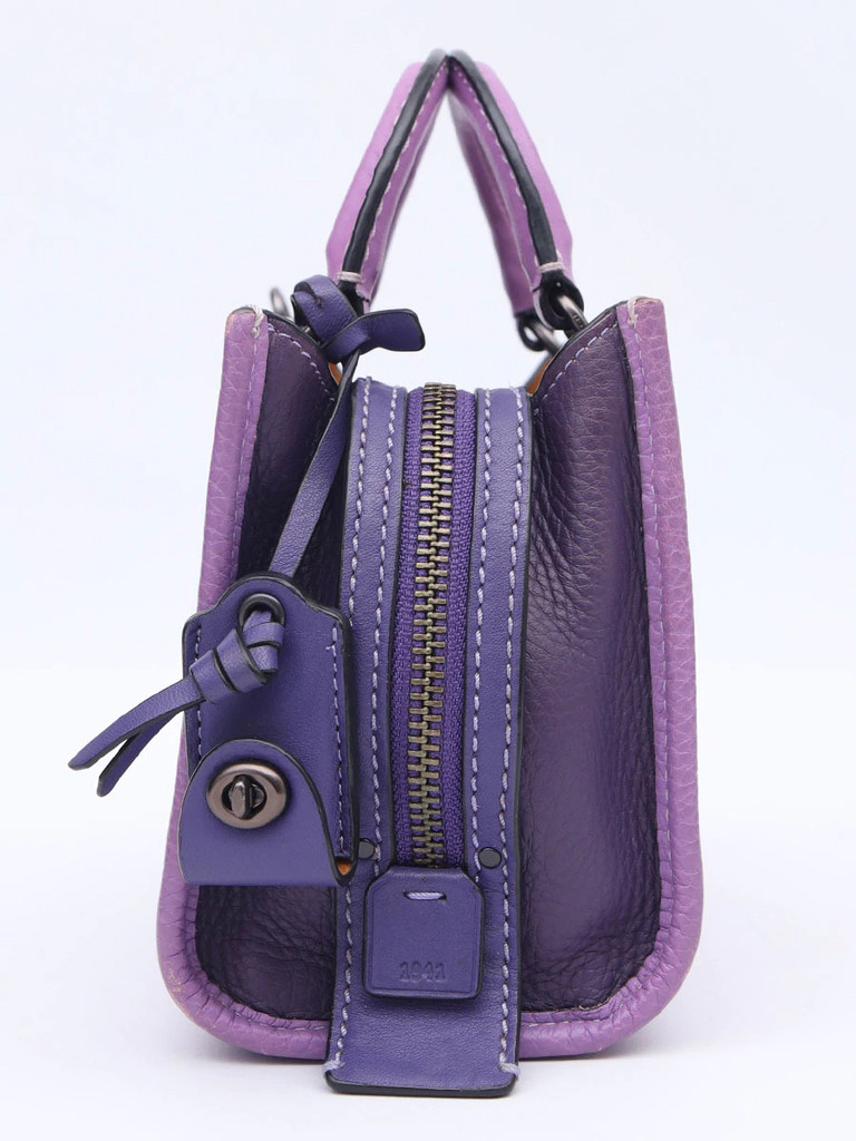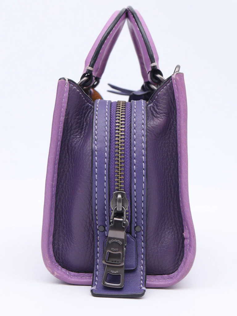 Bolsa Autêntica Coach Rogue 17 Colorblock produzida em couro Coach Glovetanned granulado na cor lilás, laterais na cor roxa e metais com banho preto fosco. Apresenta duas alças de mão, uma alça longa removível com ajuste de comprimento, dois compartimentos abertos, um compartimento central com zíper, um bolso interno com zíper e um slot para cartões. Uma bolsa luxuosa da marca Coach, rica em detalhes e materiais.