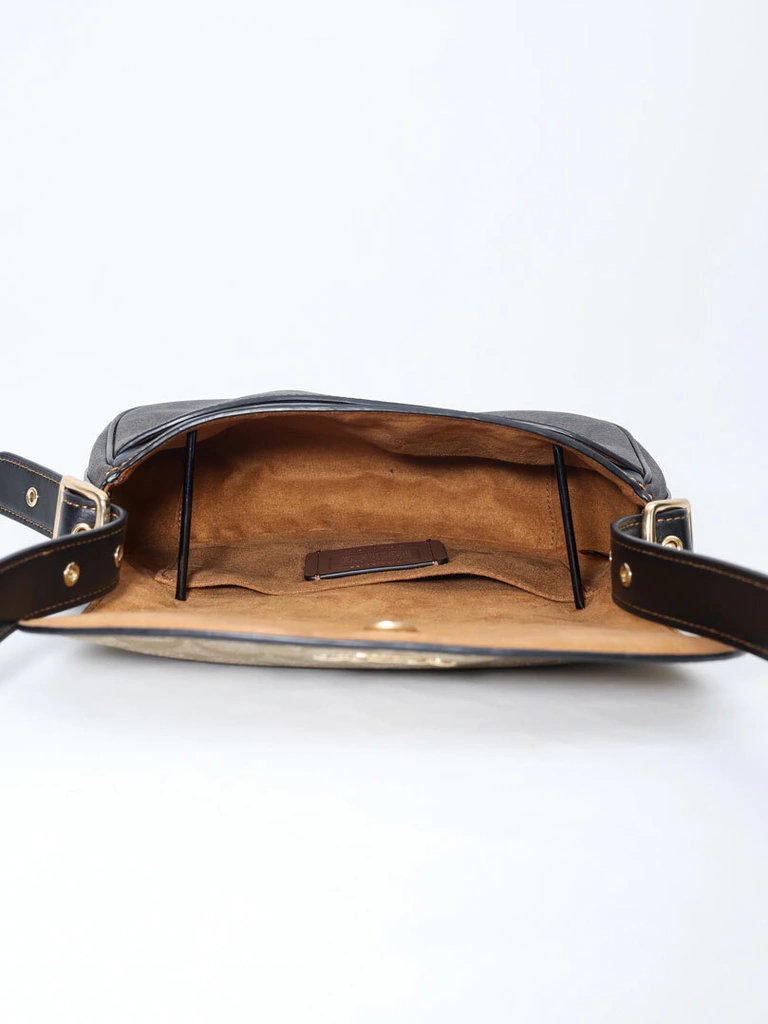 Bolsa Original Coach Signature Flap produzida material canvas estampado em duas cores (bege e marrom ébano) e metais dourados. Apresenta abertura "flap" com fechamento magnético, alça longa com ajuste de comprimento, um bolso oculto na parte de trás, um bolso oculto na parte da frente e interior aveludado com um bolso interno.