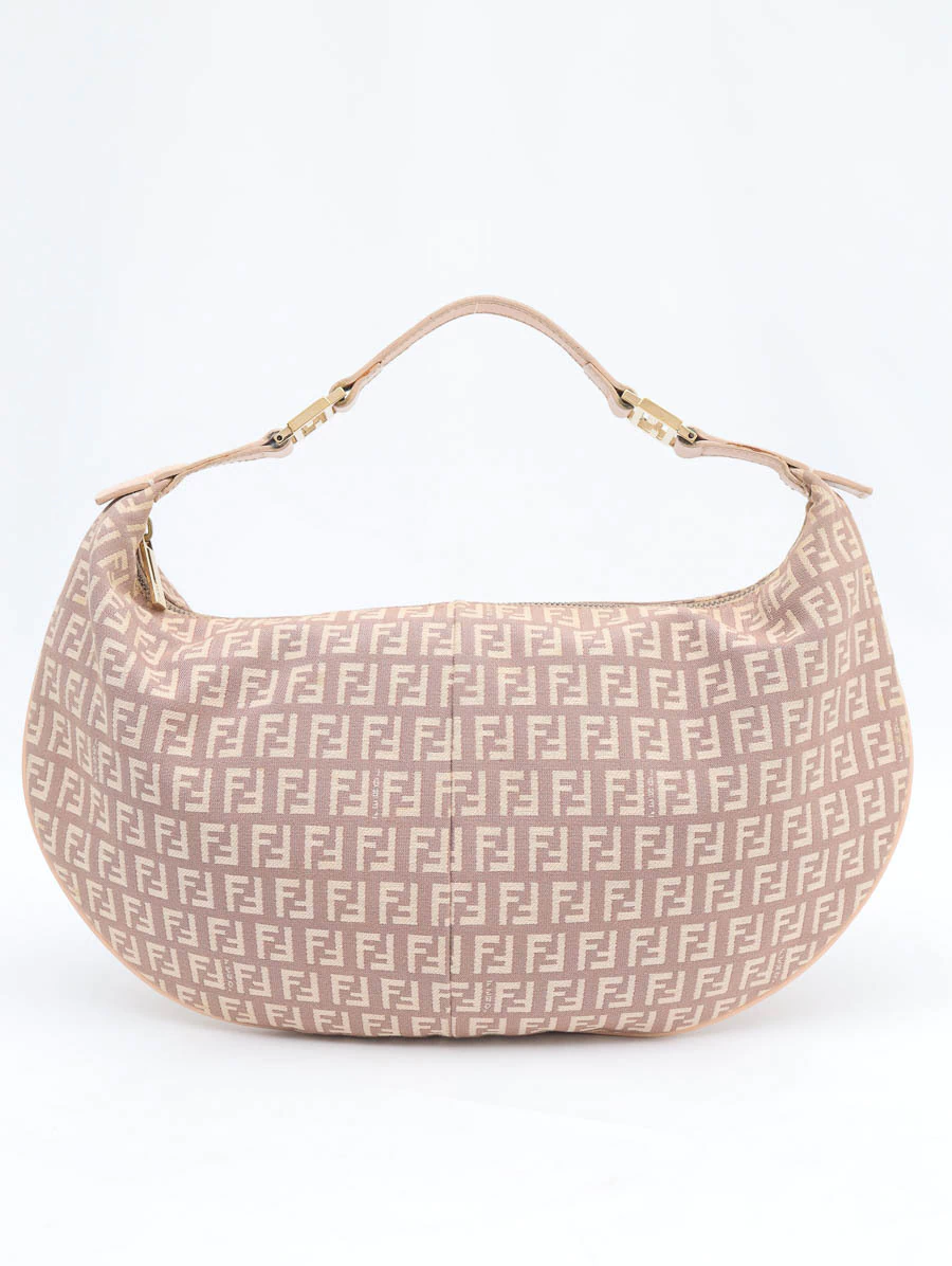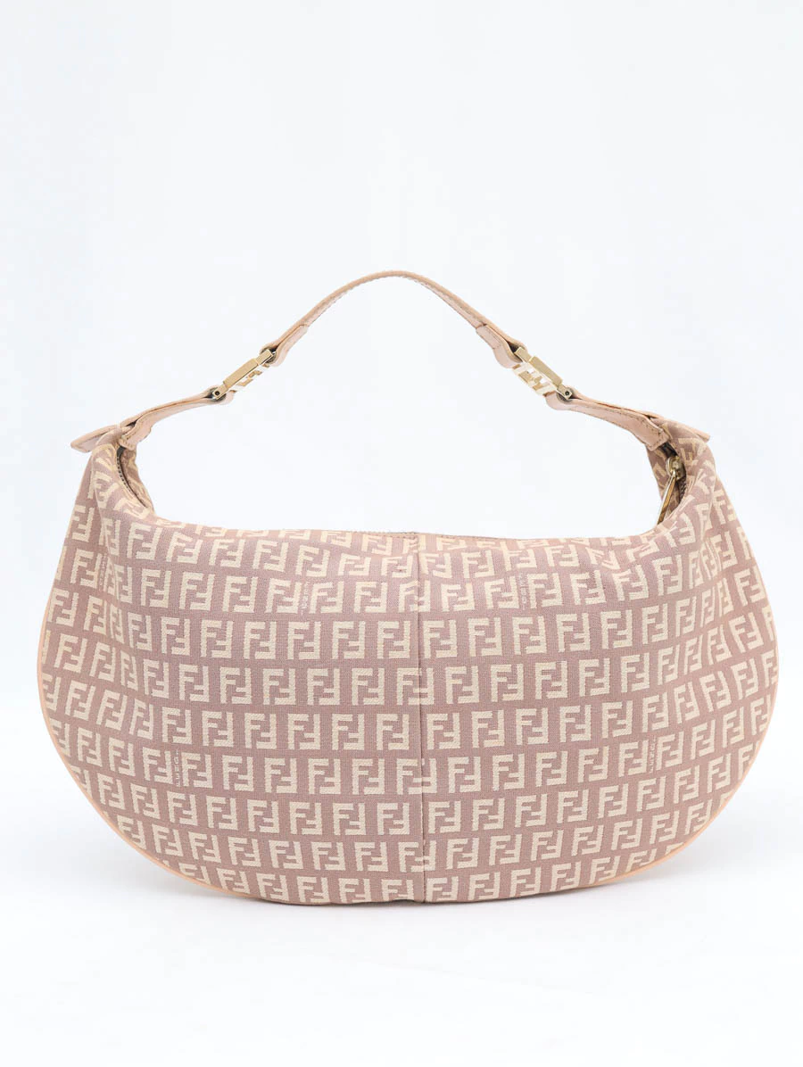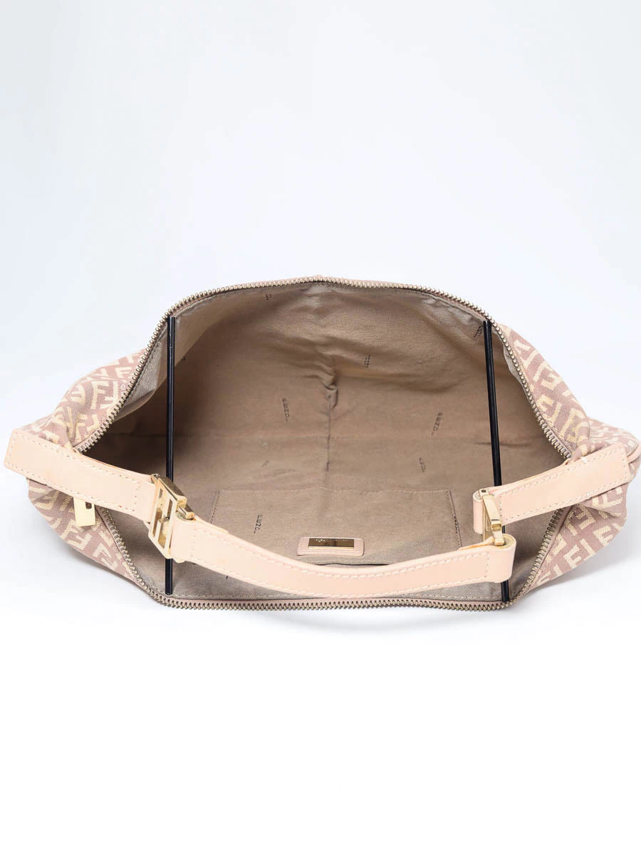 Bolsa Fendi Zucca Canvas Beige produzida em tecido com estampa nas cores nude e bege. Apresenta alça de mão em couro, abertura por zíper e compartimento único com um bolso aberto.