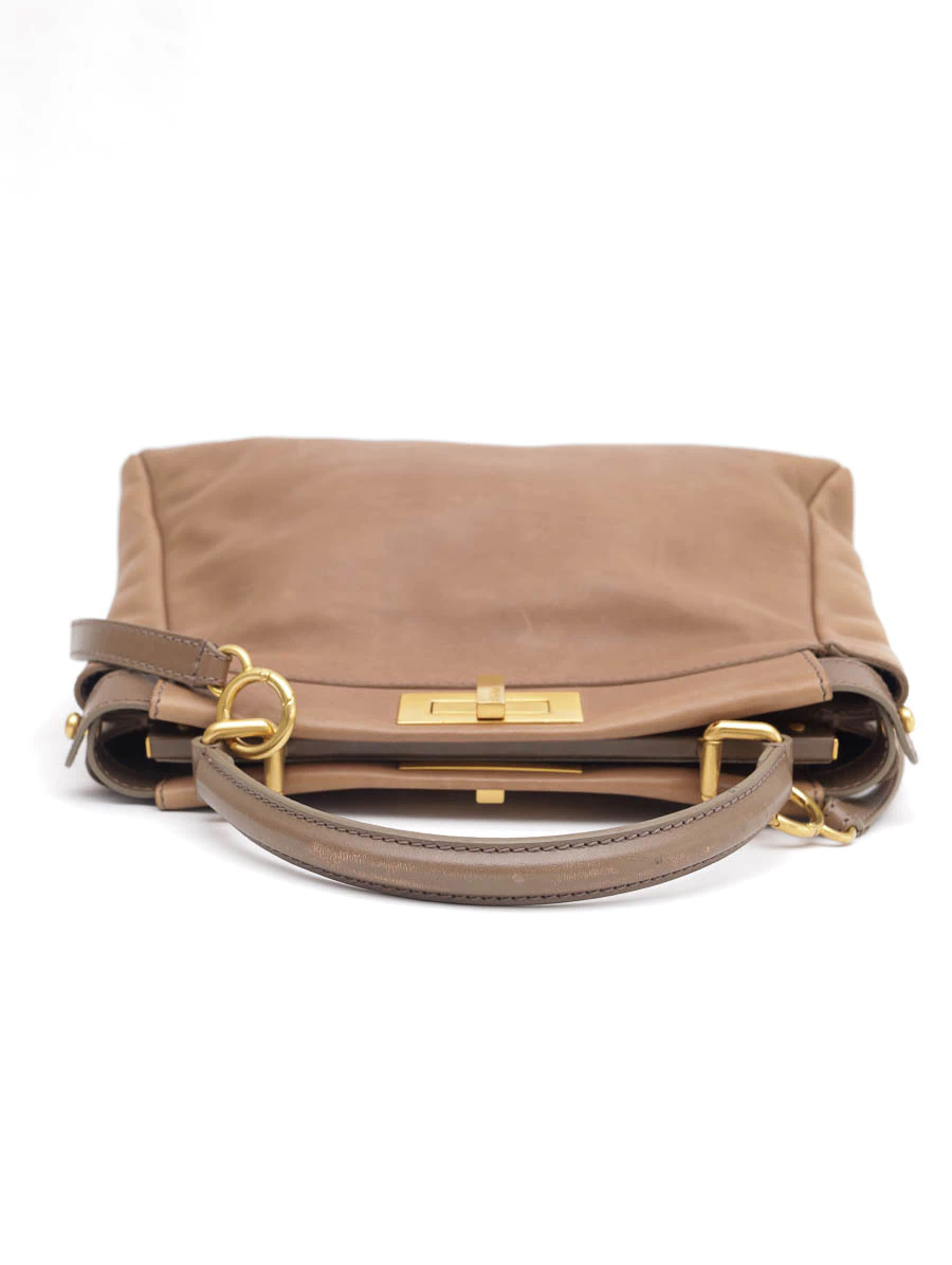 Bolsa Original Fendi Peekaboo Handbag produzida em couro na cor marrom e ferragens douradas. Apresenta alça de mão, alça longa com ajuste de comprimento, dois compartimentos e abertura por fecho de encaixe e um bolso com zíper.