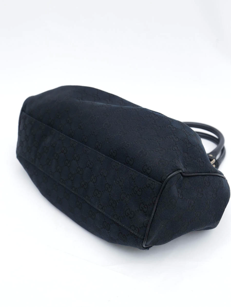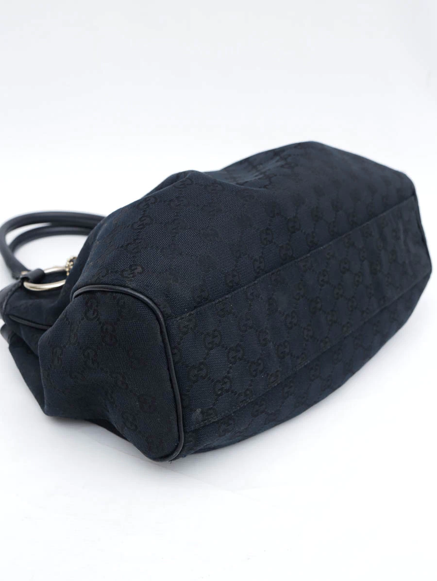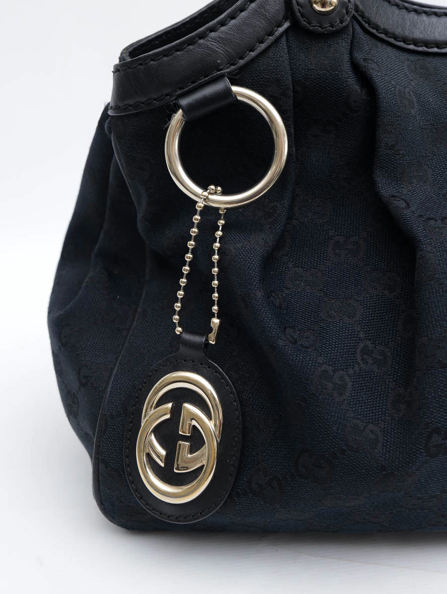 Bolsa Original Gucci Sukey Preta apresenta confortáveis alças de ombro, um maravilhoso pendente GG Gucci e interior espaçoso com um bolso com zíper. Produzida em couro na cor preta e material canvas sintético com estampa clássica monograma.