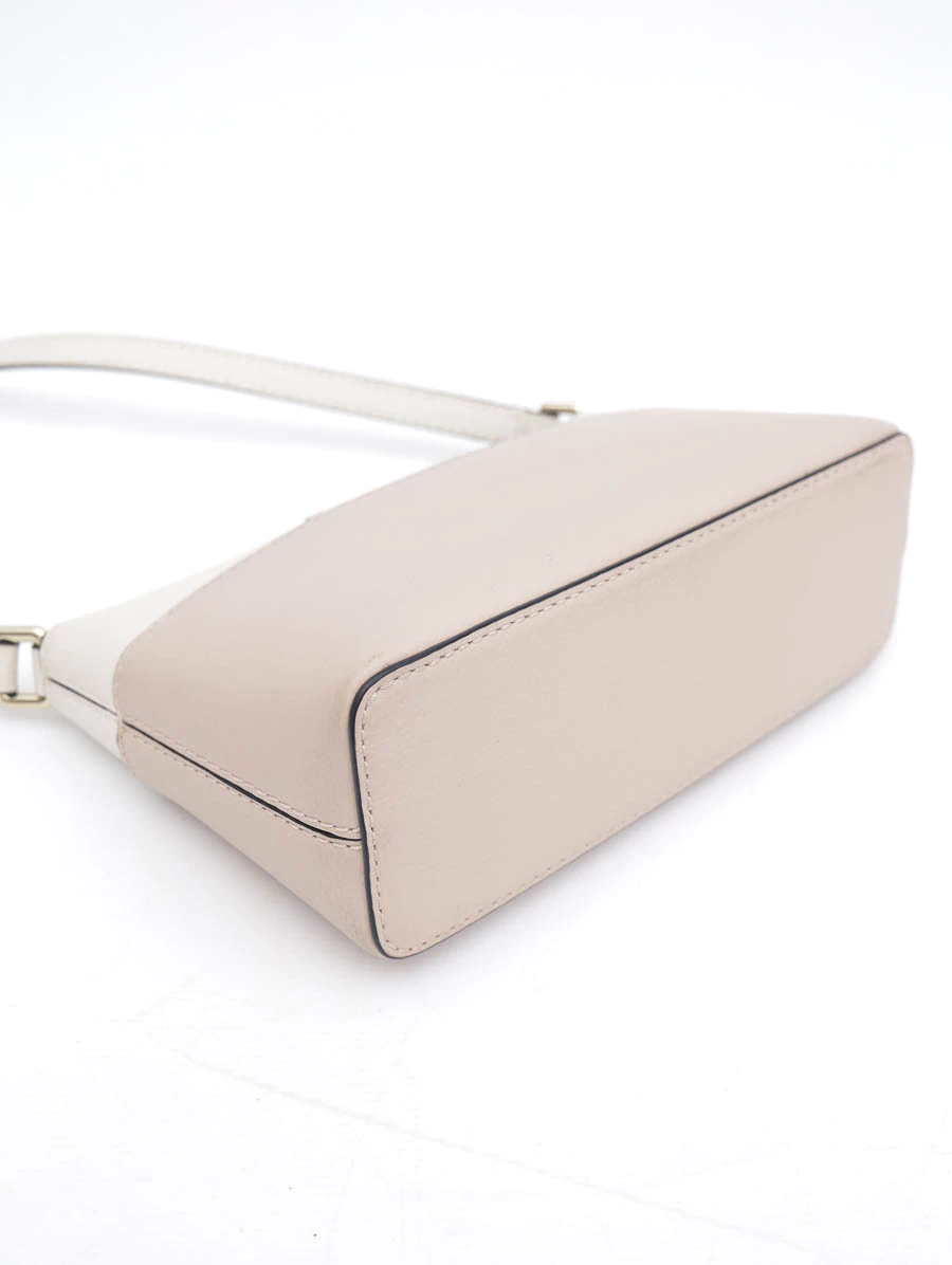 Bolsa Original Kate Spade Bay Street Hanna Leather Crossbody produzida em couro nas cores nude e off-white. Apresenta alça longa com ajuste de comprimento, abertura por zíper, compartimento com um bolso aberto e um bolso na parte frontal.
