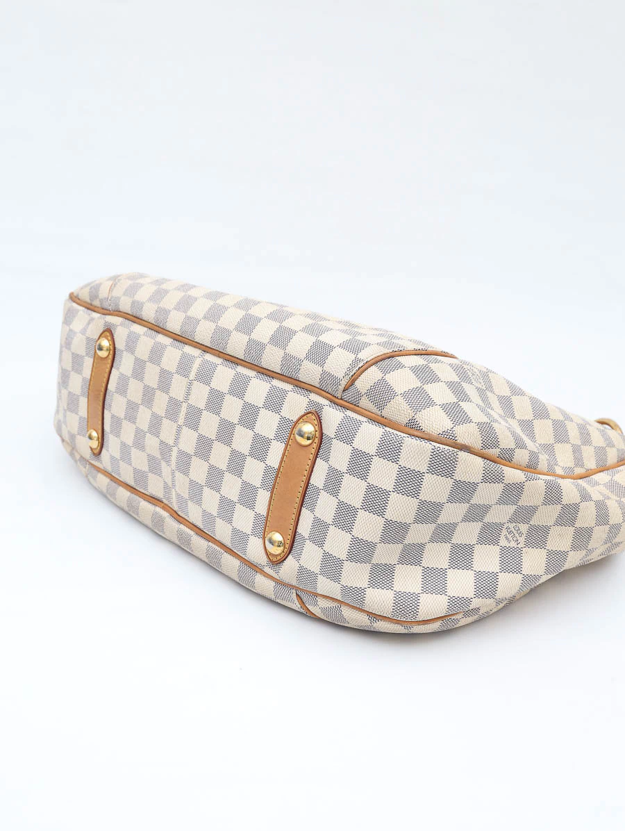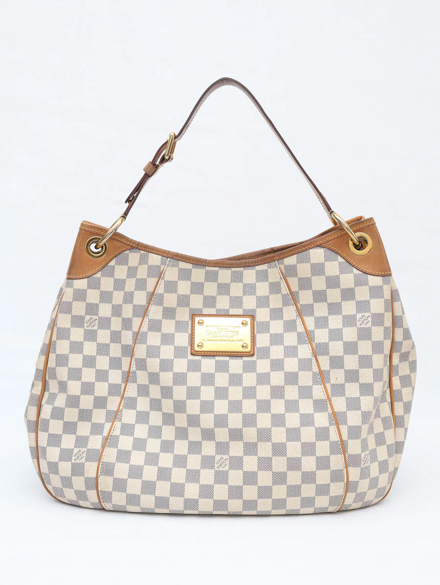 A Bolsa Louis Vuitton Galliera GM é uma maravilhosa e elegante bolsa da LV produzida em material canvas na estampa clássica monograma damier azur. O tamanho GM é o maior tamanho da família Galliera disponível e é uma opção perfeita para levar para o escritório, fazer compras e viagens. Possui forro em microfibra com um bolso interno com aba flap. A bolsa apresenta detalhes em couro natural e uma alça confortável de ombro com pequeno ajuste de comprimento.