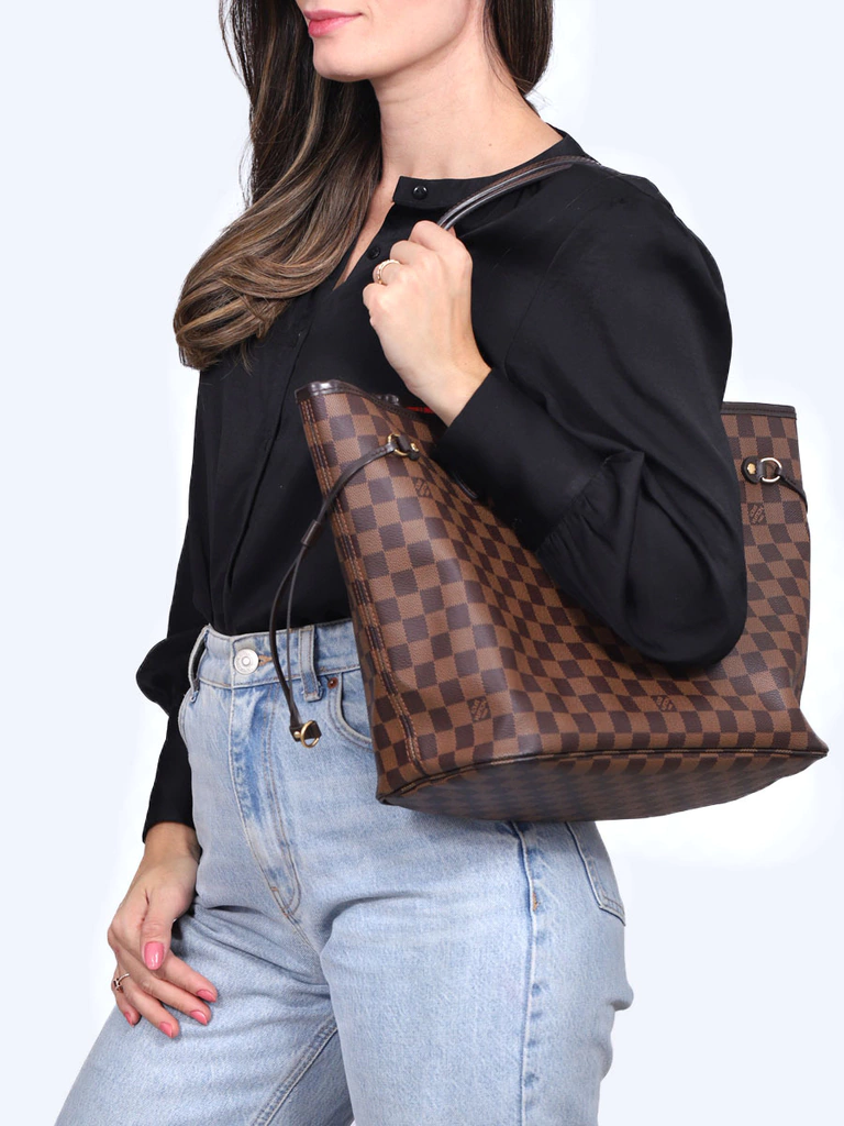 A Bolsa Original Louis Vuitton Neverfull MM é uma bolsa estilosa e perfeita para ser usada todos os dias. O tamanho MM é o tamanho médio da família LV Neverfull. Produzida no material canvas super resistente e detalhes em couro na cor ébano, cordões laterais, alças finas e confortáveis para uso sobre o ombro ou braço, forro em tecido vermelho e uma bolsa removível que pode ser usada como clutch ou bolso extra. O modelo clássico de grande sucesso da LV tem todos os atributos necessários para você enfrentar todos os dias com muita classe e praticidade.