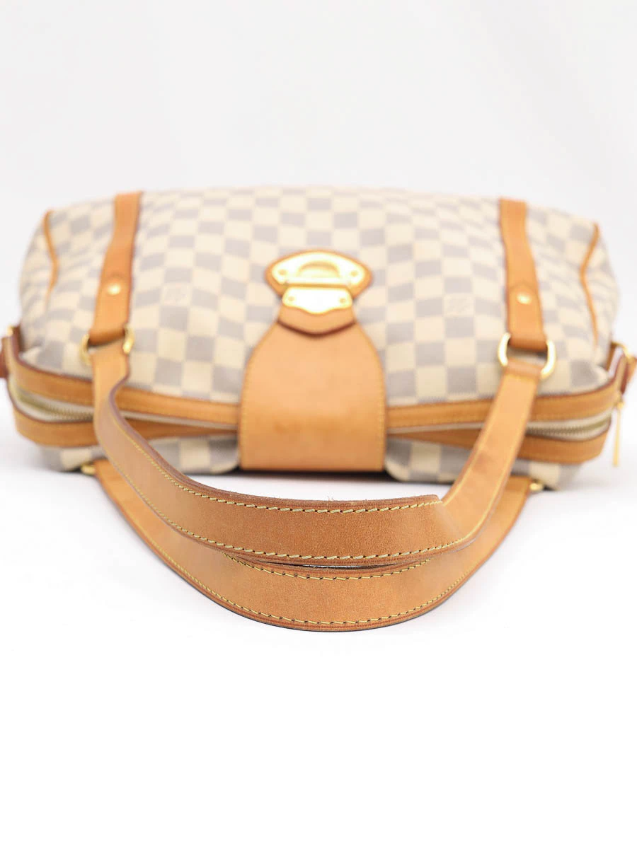 Bolsa Original Louis Vuitton Stresa Damier Azur produzida em canvas na estampa Damier Azur e detalhes em couro Vachetta. Apresenta abertura por fecho de enciaxe e zíper, compartimento único bem espaçoso com dois bolsos abertos.