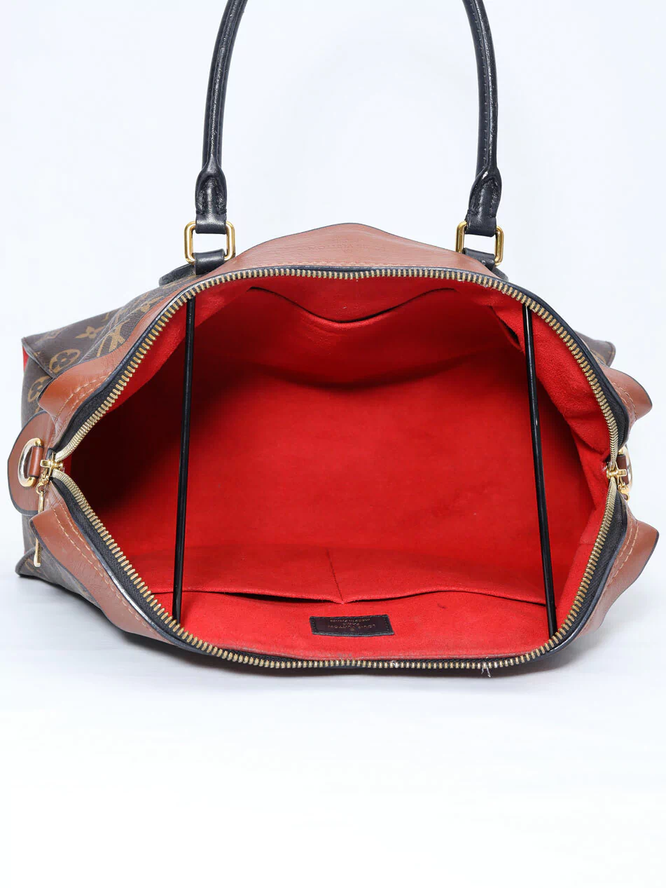 A Bolsa Louis Vuitton Tricolor Tuileries NM é uma uma obra de arte em design e sofisticação, extremamente luxuosa, prática e impressiona por apresentar um peso muito leve. Produzida em material sintético de alta durabilidade (canvas) na estampa monograma e detalhes em couro em três cores (marrom, preto e vermelho). O modelo apresenta abertura superior com dois zíperes, bolso frontal oculto, alça longa removível e interior espaçoso com três bolsos.