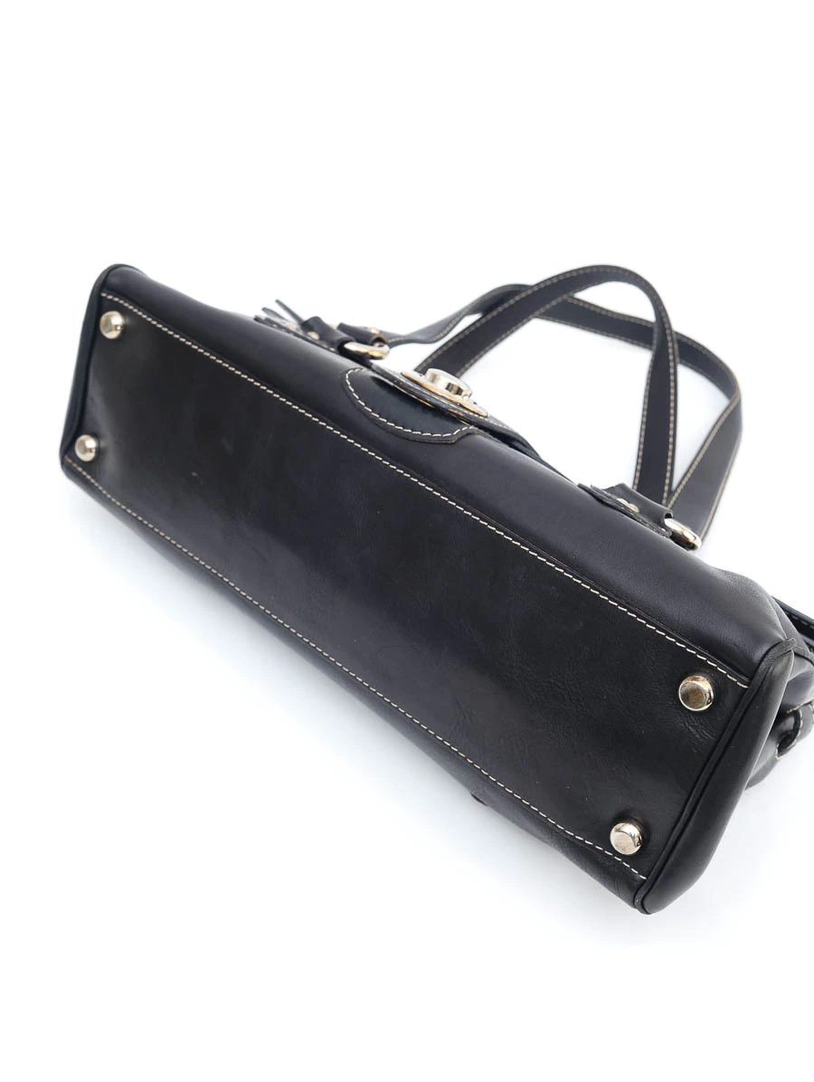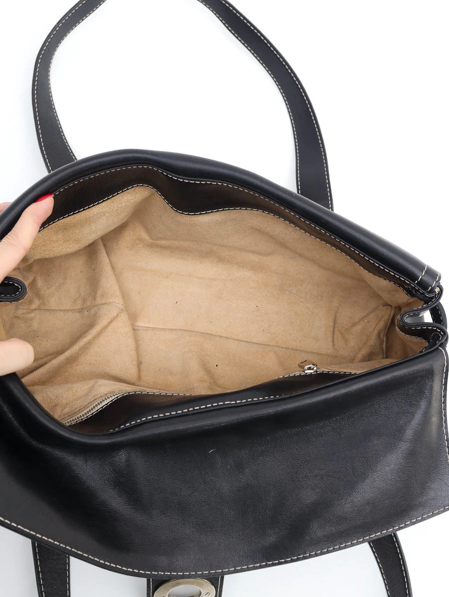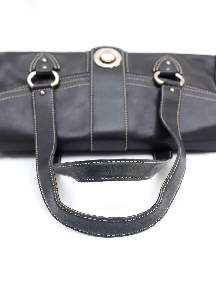 A Bolsa Marc Jacobs é uma peça que une elegância clássica com um toque contemporâneo, perfeita para compor looks sofisticados no dia a dia. Confeccionada em couro preto macio, ela se destaca pelos pespontos brancos contrastantes e pelos detalhes em metais prateados, incluindo fivelas e fecho giratório frontal. O design e as alças médias oferecem praticidade e conforto no uso, além de um visual refinado e atemporal. Internamente, a peça conta com bom espaço para organização dos itens essenciais, ideal para acompanhar a rotina com estilo.