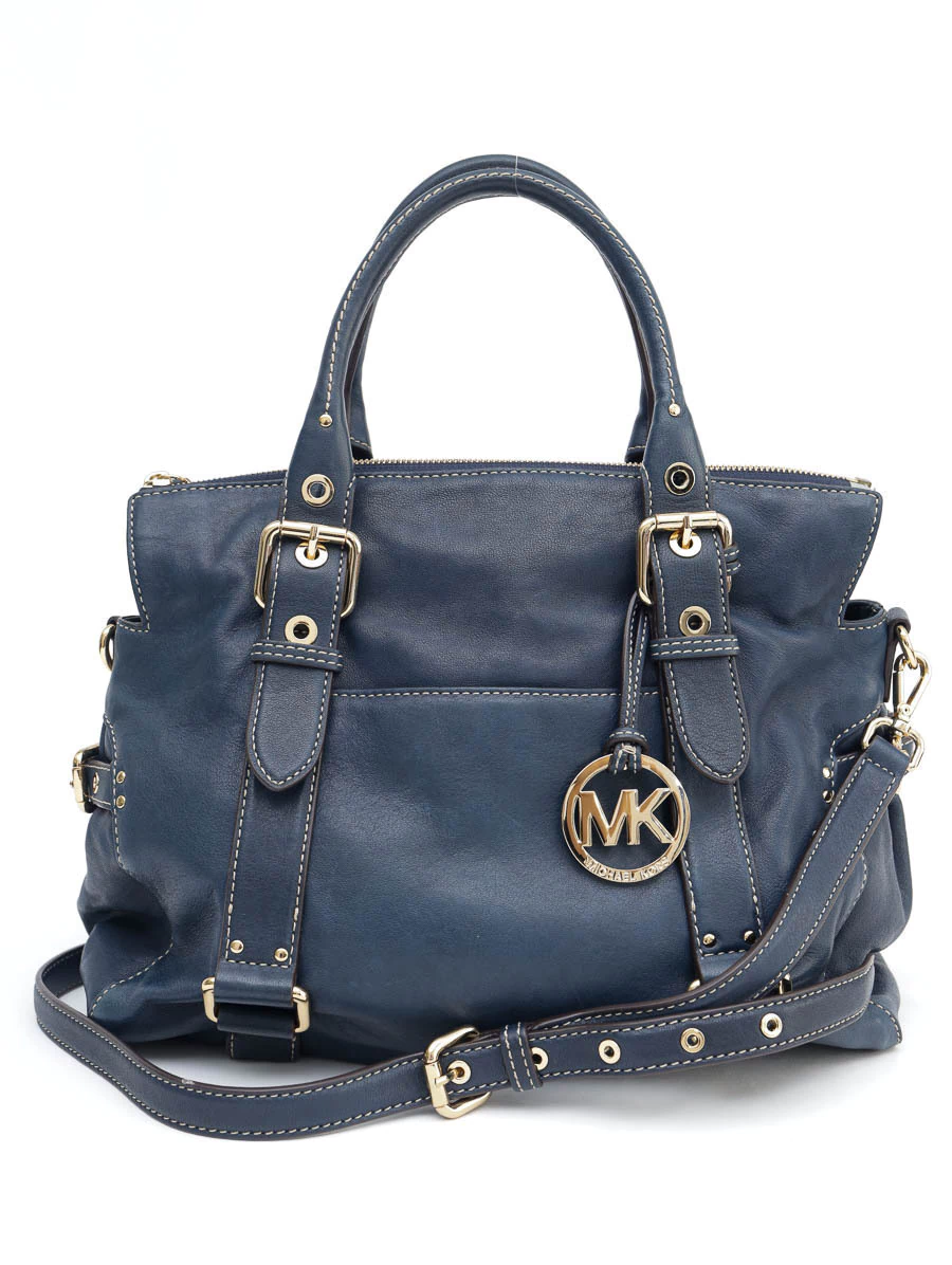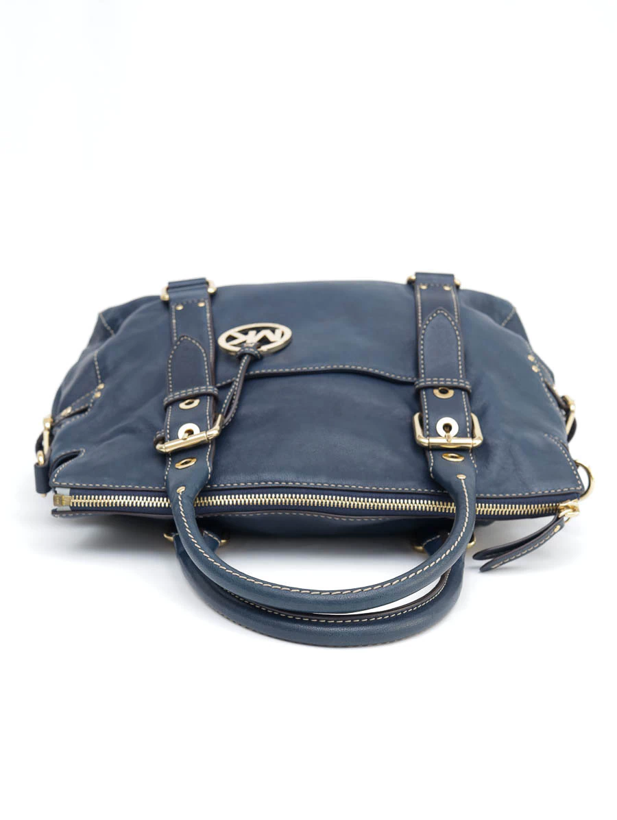 Bolsa Seminova Original Michael Kors Handbag é produzida em couro na cor azul. Apresenta abertura superior com zíper, alças de mão, uma alça longa removível e ajustável, fivelas e ferragens douradas, interior em nylon, dois bolsos externos e cinco bolsos internos.