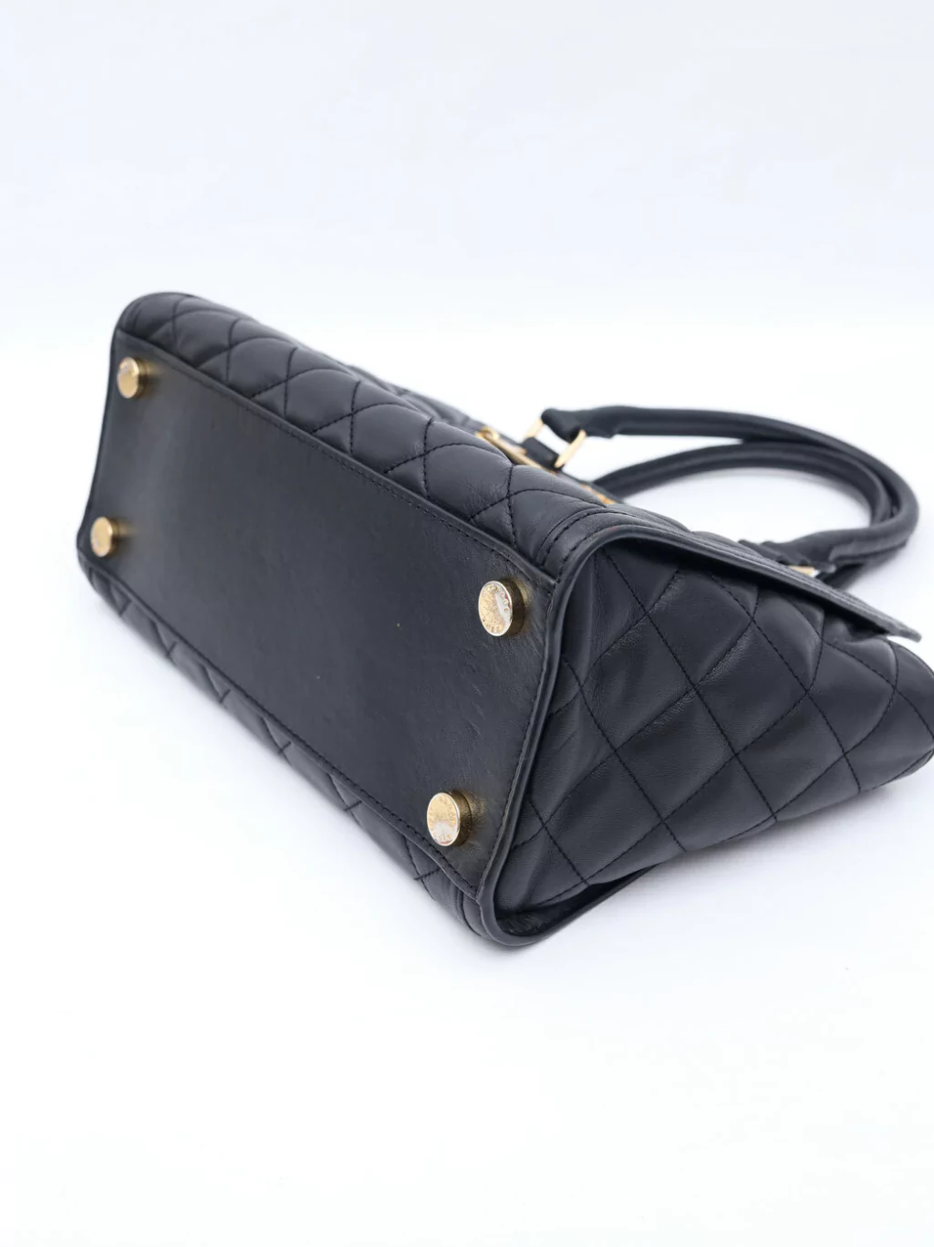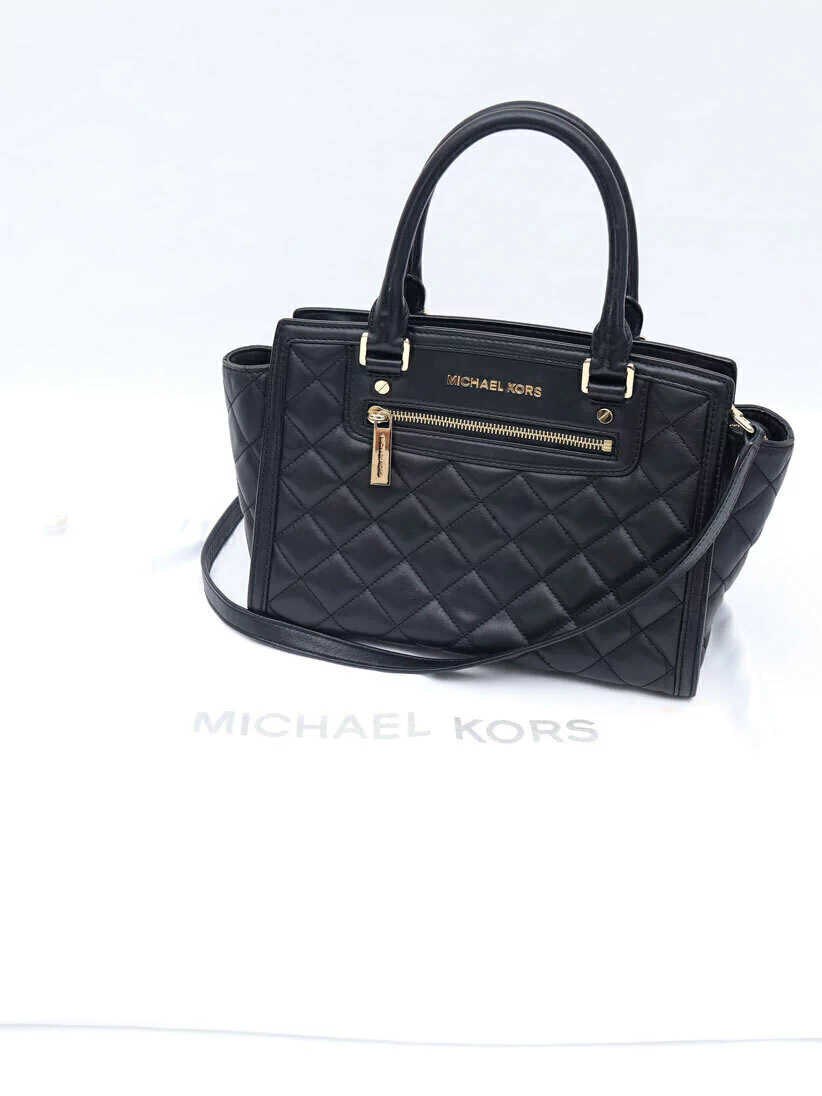 A Bolsa Autêntica Michael Kors Matelassê Black Tote é a escolha perfeita da bolsa para usar todos os dias ou a noite. No tamanho médio e com um belíssimo couro lambskin preto e acolchoado, apresenta um bolso frontal, alça longa removível com ajuste de comprimento, abertura superior com zíper, forro de nylon com três bolsos.