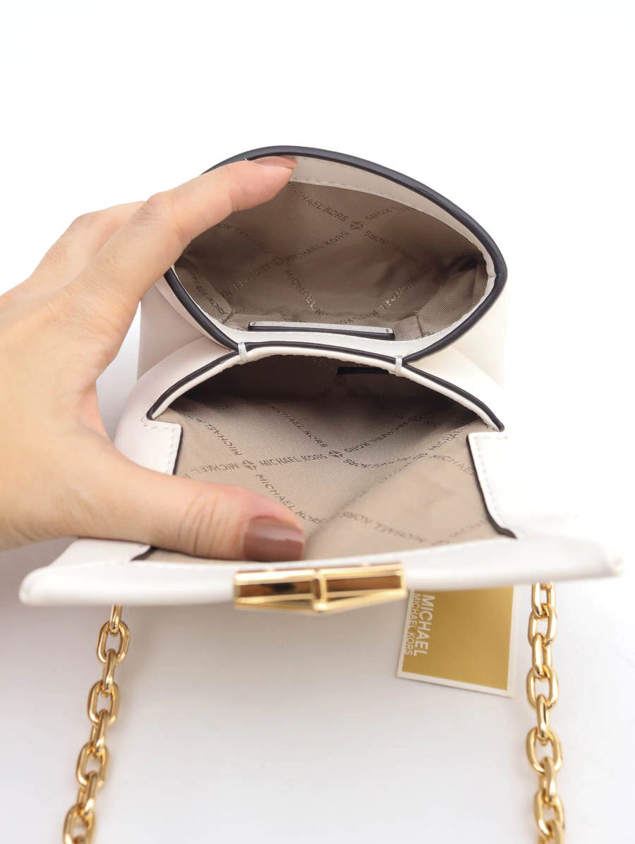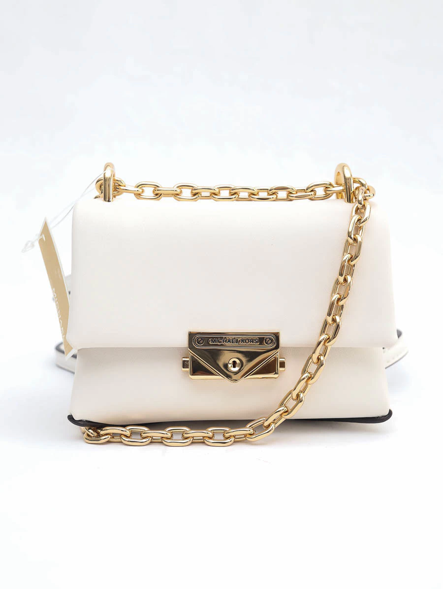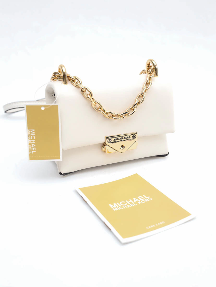 Bolsa Original Michael Kors Cece Micro, um mimo irresistível da marca. Produzida em cor off white com ferragens douradas e alça crossbody, possui abertura flap, dois compartimentos internos, ideal para carregar maquiagem pequena e documentos pessoais com charme e praticidade.