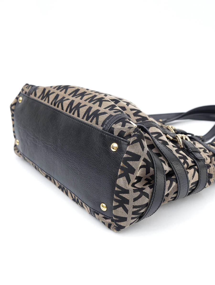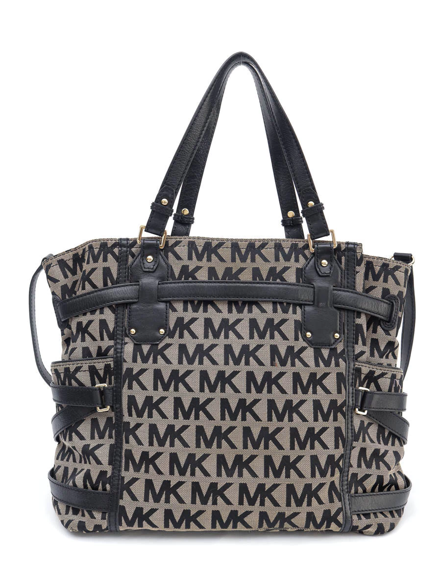 Bolsa Original Michael Kors Monograma Tote é uma bolsa grande super prática e leve. Produzida em lona têxtil jacquard estampada, apresenta abertura superior com fecho magnético, duas alças atadas de ombro confortáveis, dois bolsos nas laterais e interior em nylon super espaçoso com cinco bolsos.