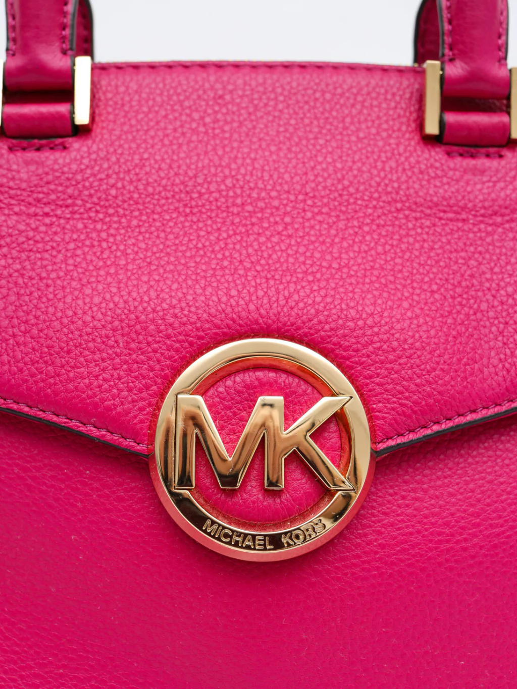 ABolsa Michael Kors Pink Medium Crossbodyé uma bolsa média, jovem e muito prática. Produzida em couro na cor rosa choque e metais dourados, apresenta logo MK, um bolso frontal e um bolso na parte de trás, alça longa removível com ajuste de comprimento, alças de mão, abertura superior com zíper e interior em nylon estampado com 5 bolsos para uma perfeita organização.