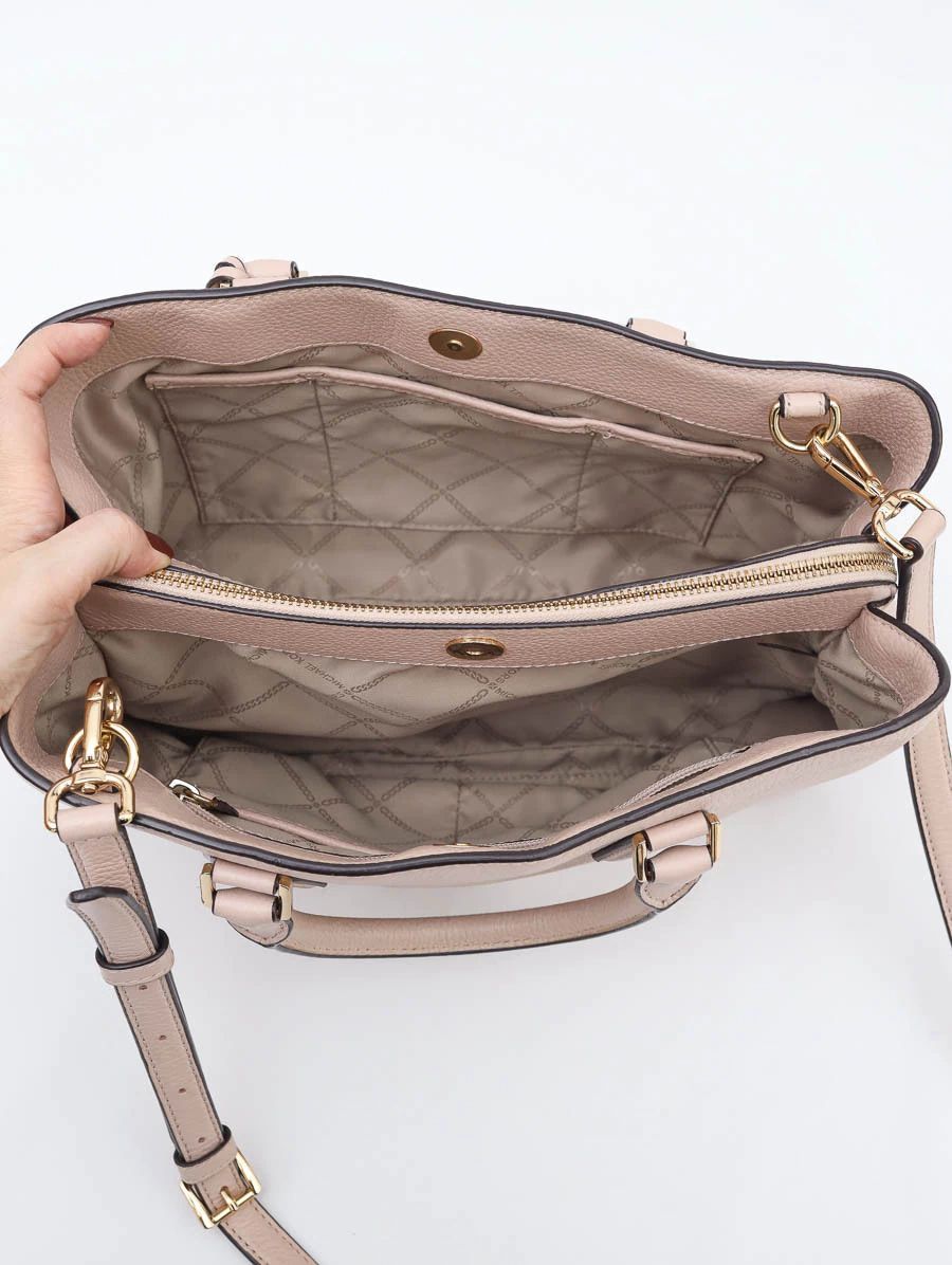 A bolsa Michael Kors é a escolha perfeita para te acompanhar todos os dias com estilo e praticidade. Em um delicado tom de rosa claro, complementado por metais dourados elegantes, ela combina sofisticação com funcionalidade.