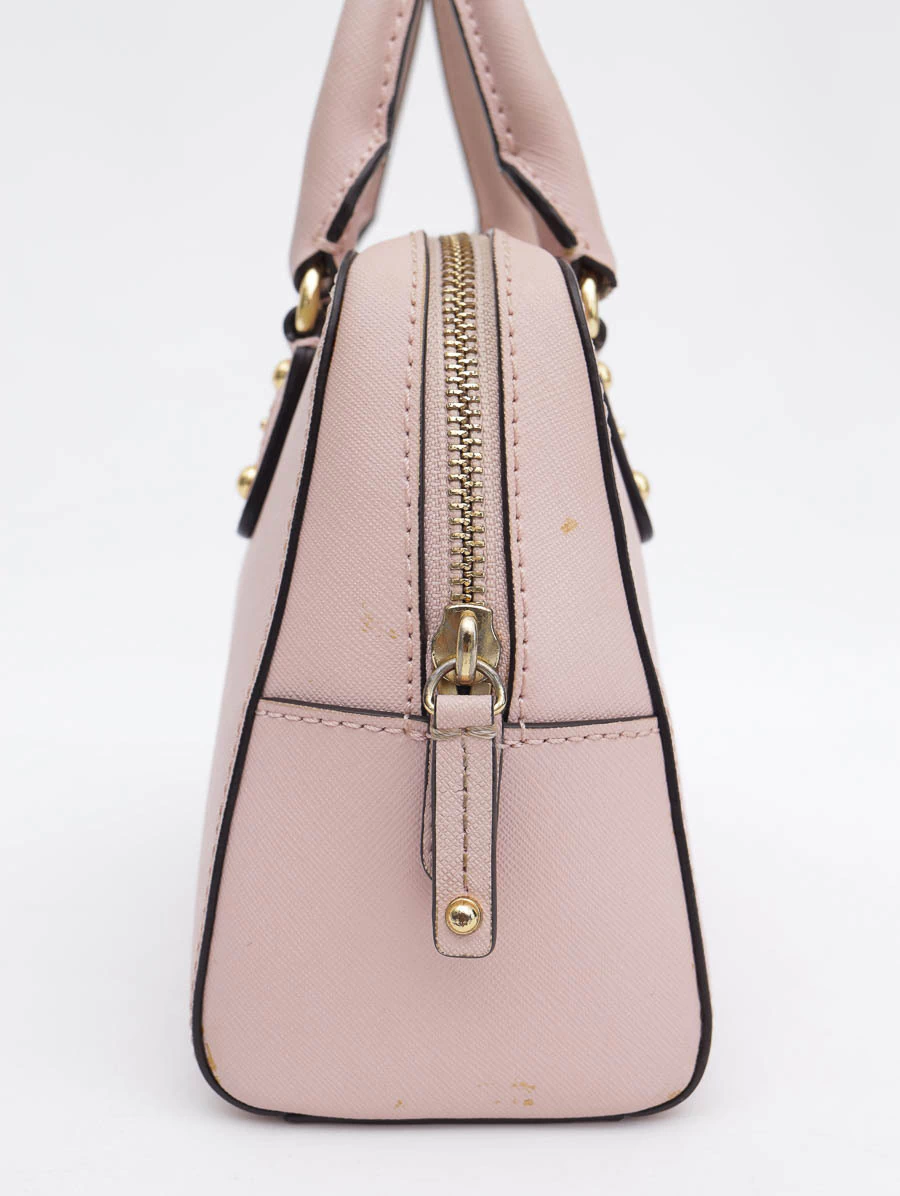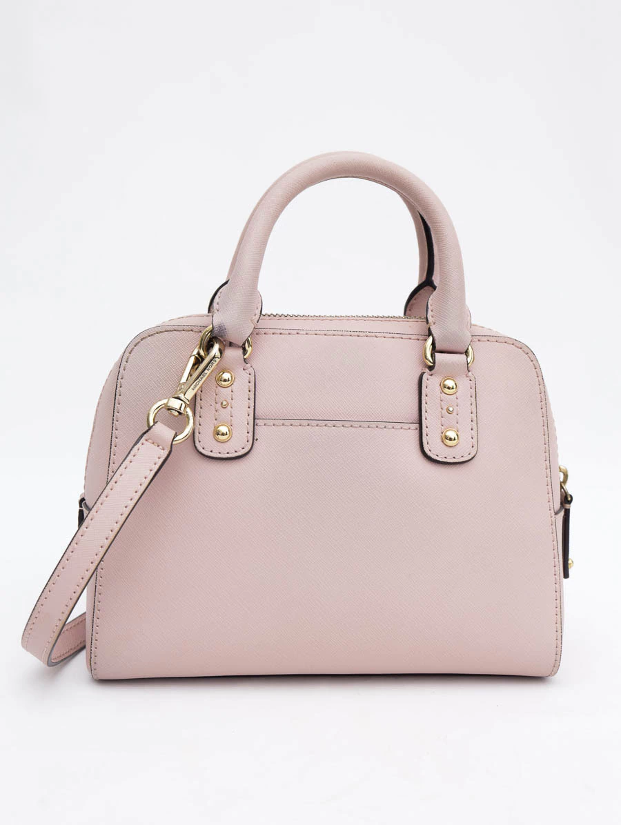 Bolsa Original Michael Kors Saffiano Tote Crossbody produzida em couro na cor rosa. Apresenta alças de mão, alça longa com ajuste de comprimento, abertura por zíper e compartimento único com um bolso com zíper.