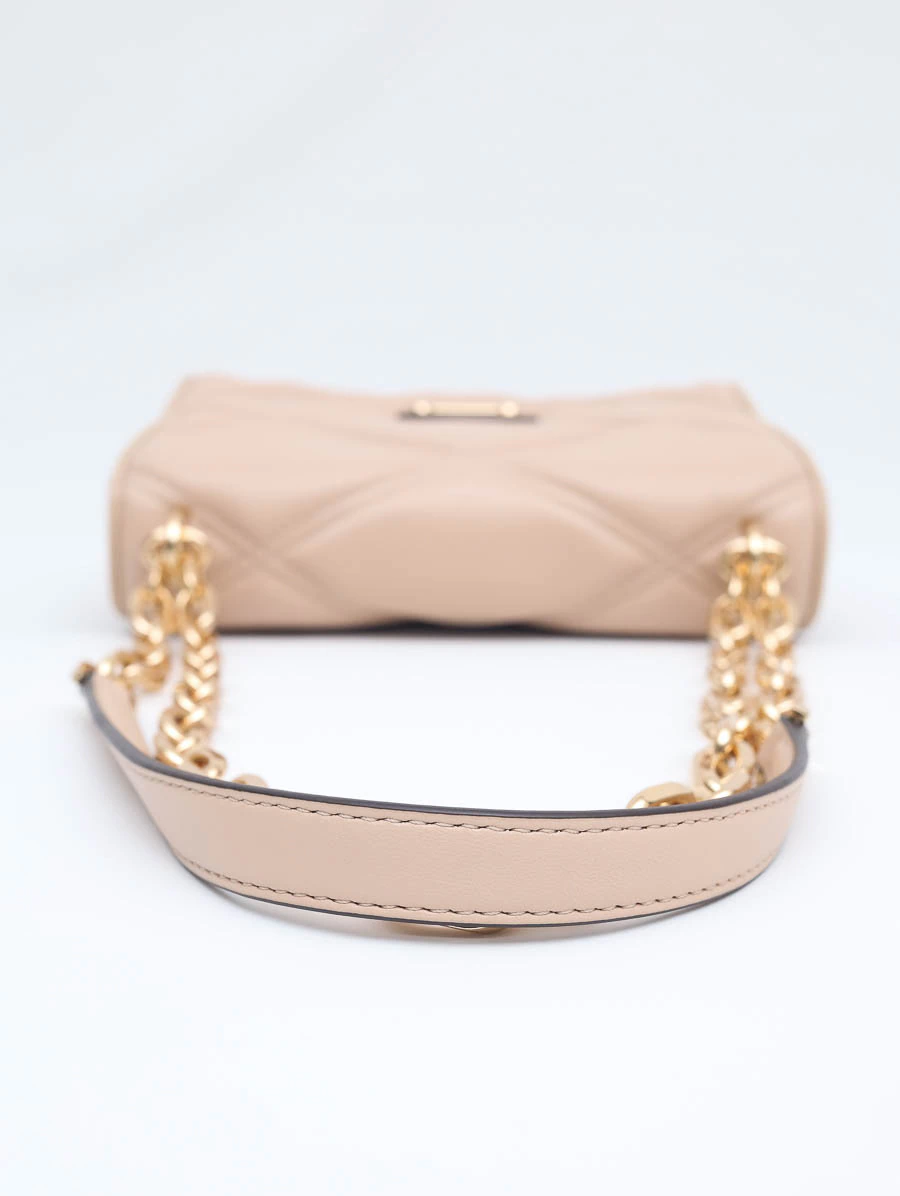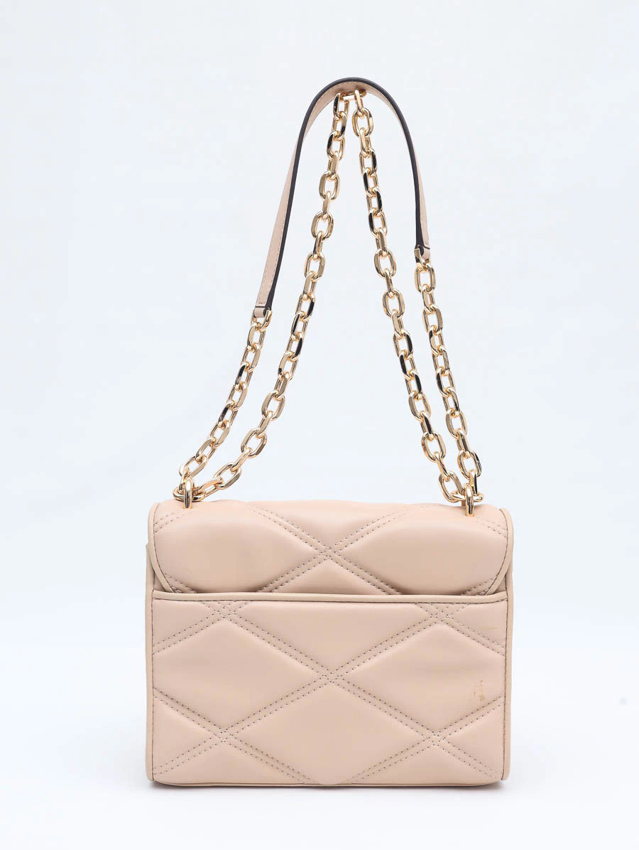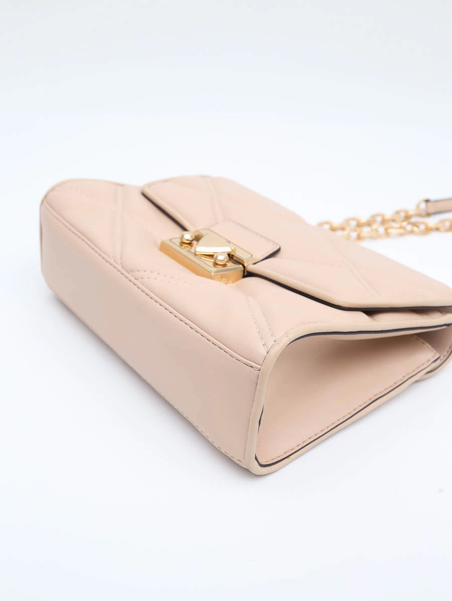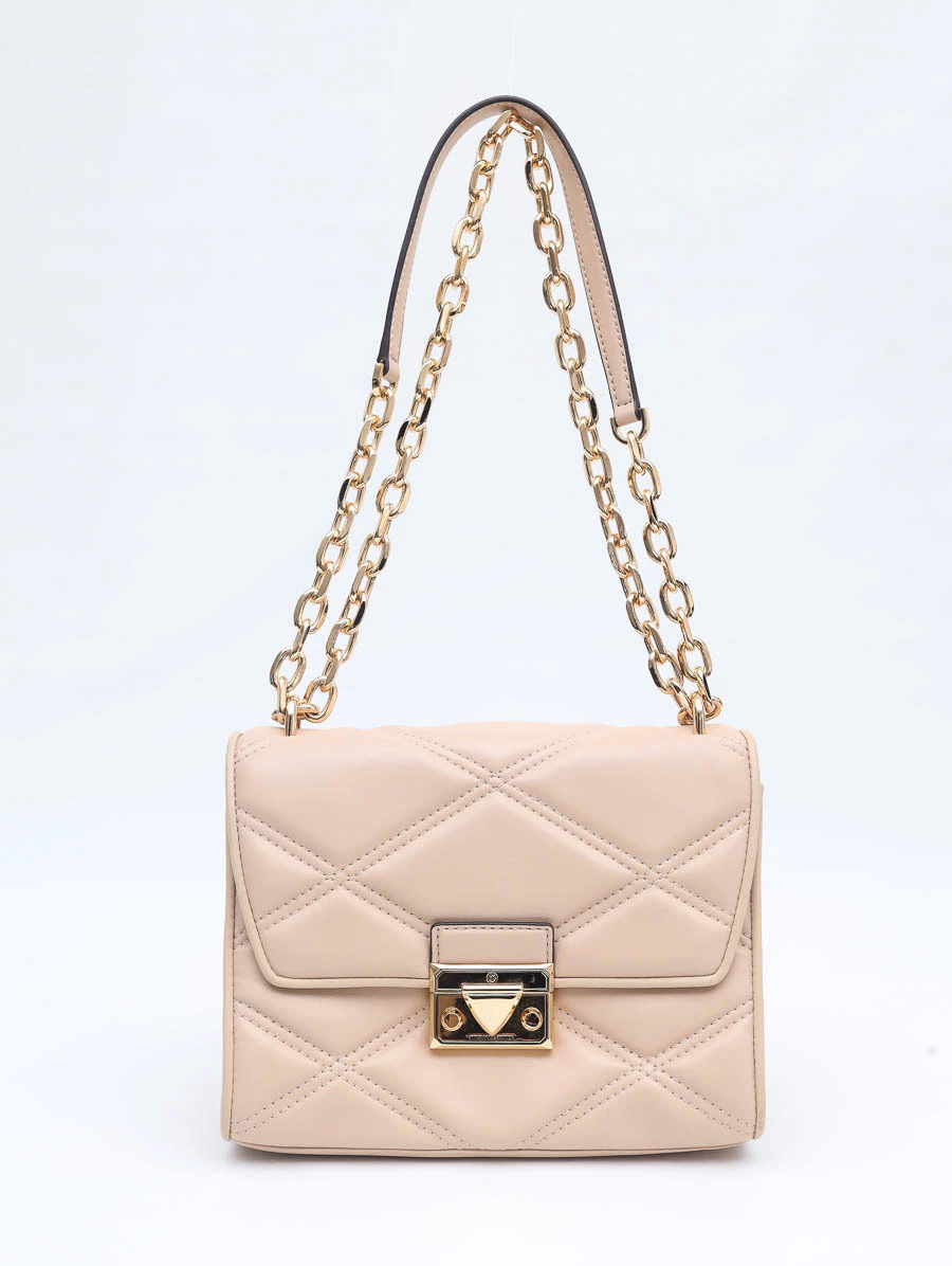 Bolsa Seminova Original Michael Kors Serenaproduzida em couro liso em tom nude e ferragens douradas. Apresenta alça longa em corrente, abertura por fecho de encaixe, um compartimento com um bolso aberto e um bolso com zíper.