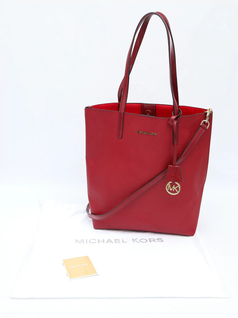 A Bolsa Original Michael Kors Shopping Tote Crossbodyé um modelo super versátil e muito leve. Com capacidade para transportar um notebook, livros e pertences, é uma excelente opção para passeios, trabalho ou faculdade. Produzida em couro texturizado na cor vinho e metais dourados, apresenta uma alça longa removível com regulagem de comprimento, fechamento superior com fecho magnético e interior em couro com um bolso.