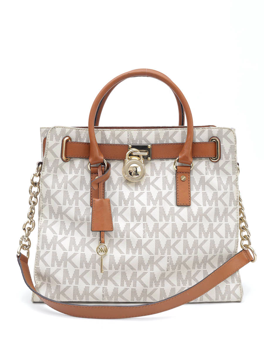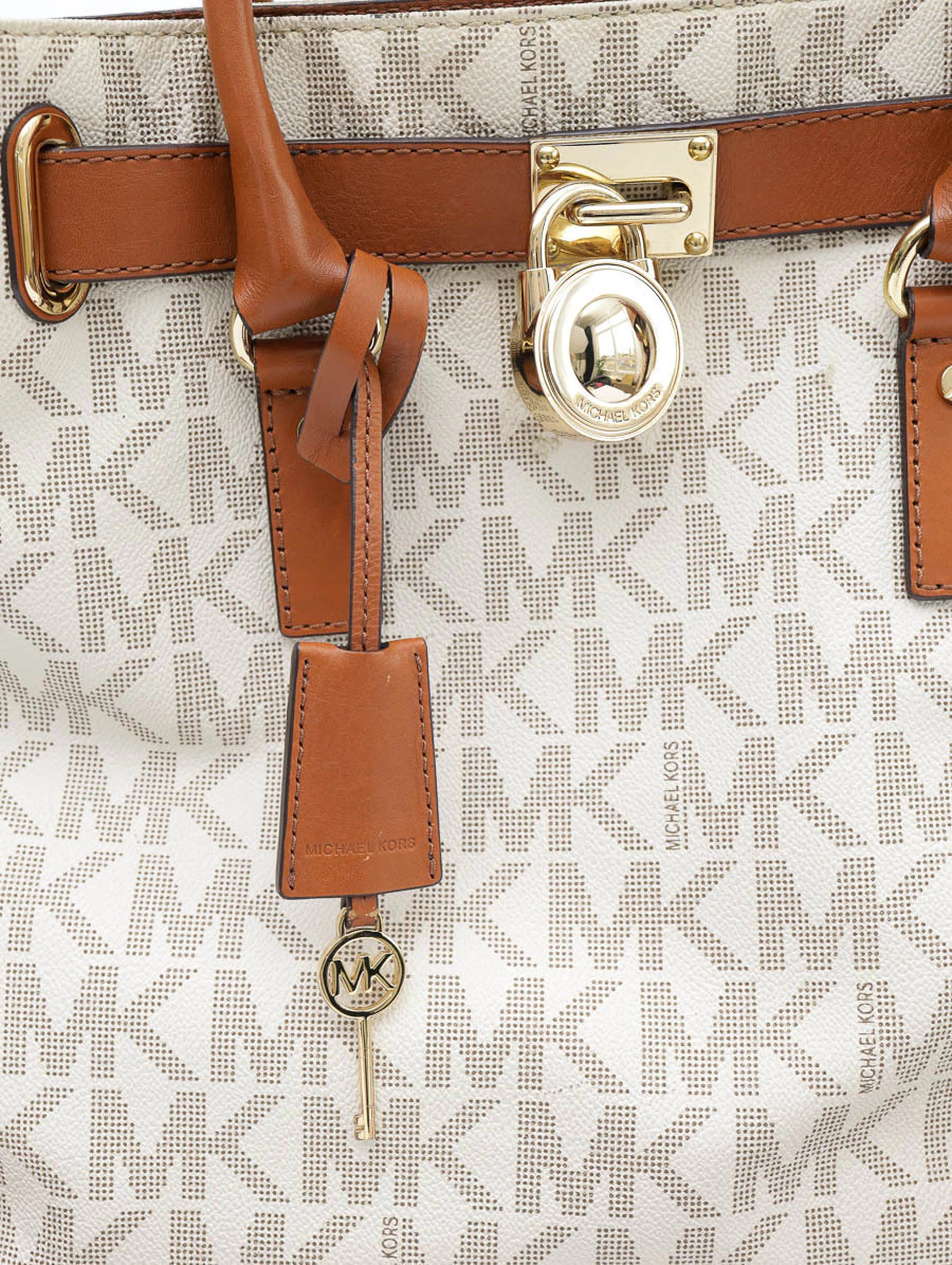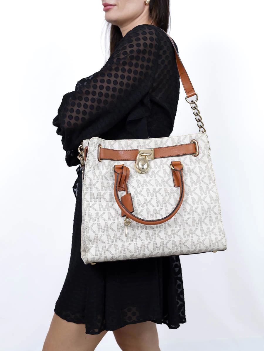 Bolsa Original Michael Kors Monograma produzida em canvas monograma, detalhes em couro marrom e ferragens douradas. Apresenta alças de mão, alça de ombro, abertura por fecho magnético, compartimento espaçoso com quatro bolsos abertos e um bolso com zíper.
