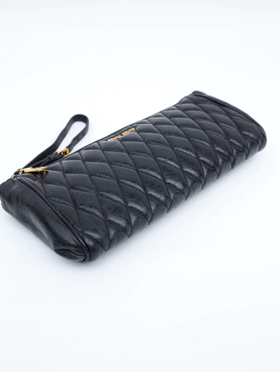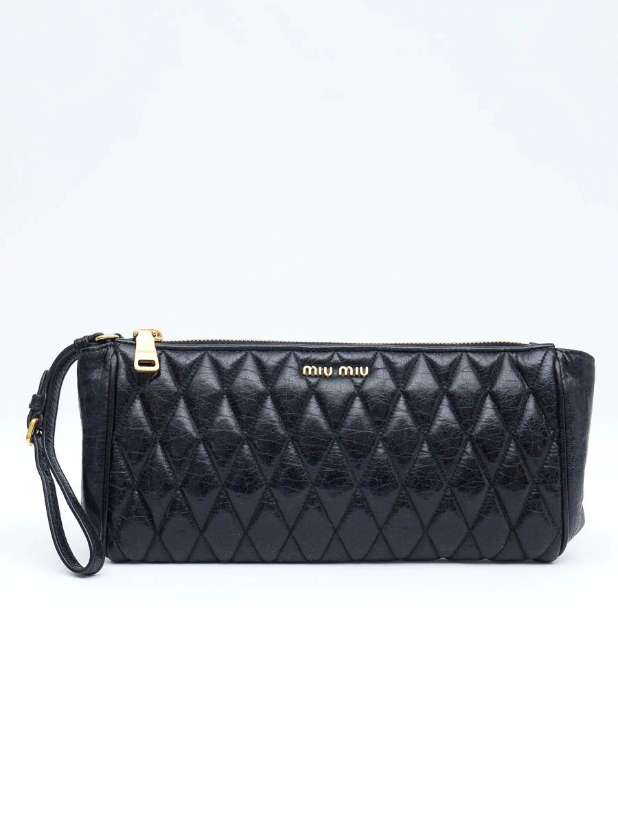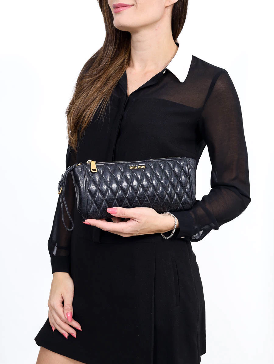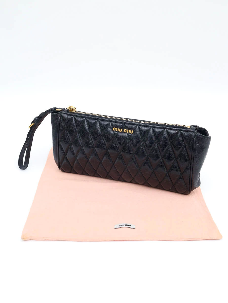 Bolsa Original Miu Miu Matelassê Blackproduzida em couro de vitelo na cor preta.Apresenta compartimento único com um bolso pequeno e abertura por zíper, ferragens douradas e uma alça pequena. Está em excelente estado de conservação, com mínimos sinais de uso.