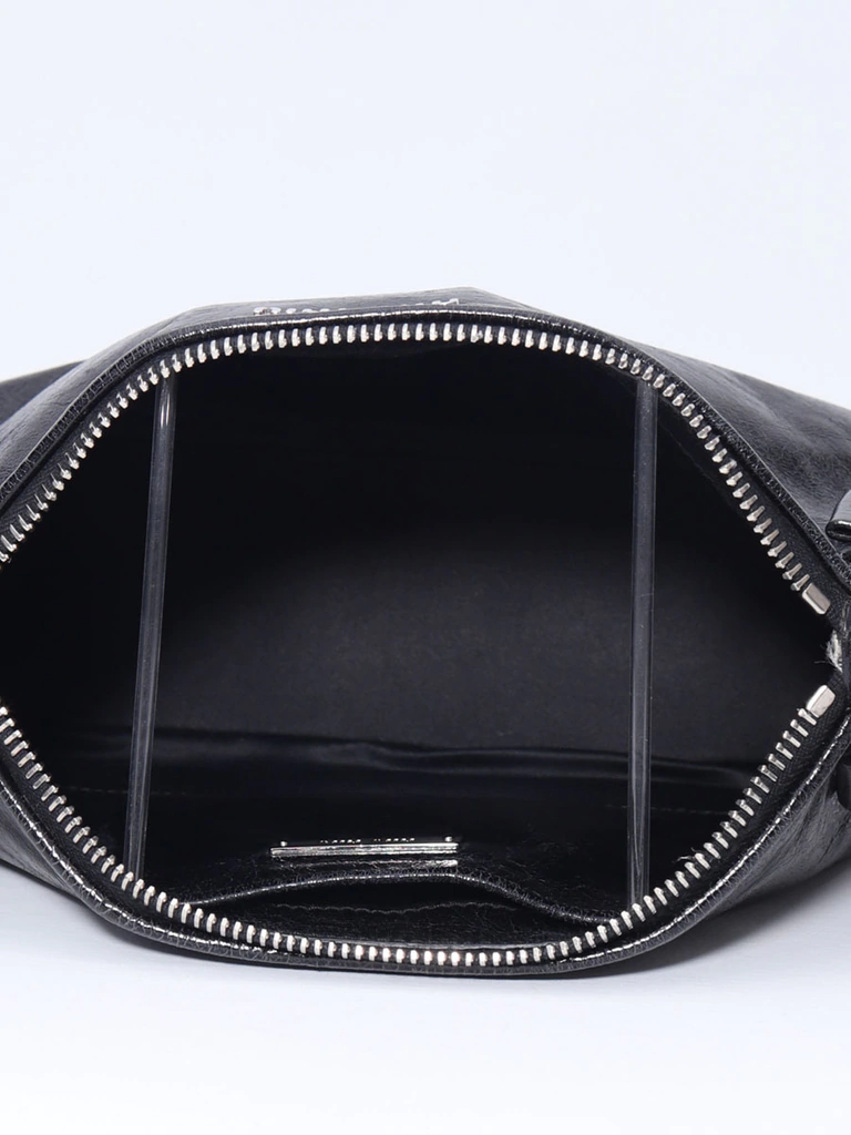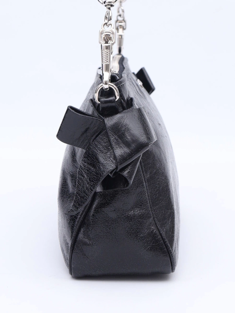 Esta pequena Bolsa Original Miu Miu Lux Nero RR1892é uma excelente opção versatil que pode ser usada de dia ou para enventos noturnos. Produzida em couro de vitello preto liso com textura e metais com banho prata com brilho, apresenta uma alça media removível com pequeno ajuste de comprimento, abertura superior com zíper, lindos laços decorativos nas laterais e interior com capacidade para carregar um celular tamanho plus, pequena carteira, chaves do carro, pequeno perfume e um bolso interno para armazenar catões e dinheiro.
