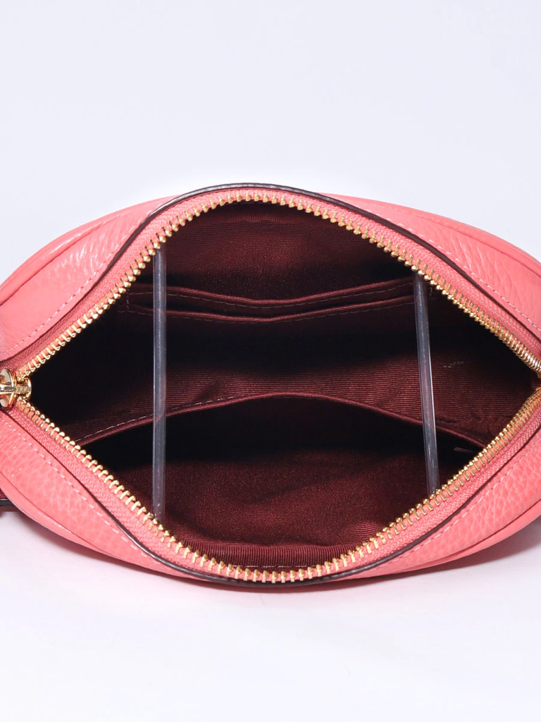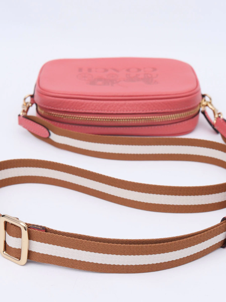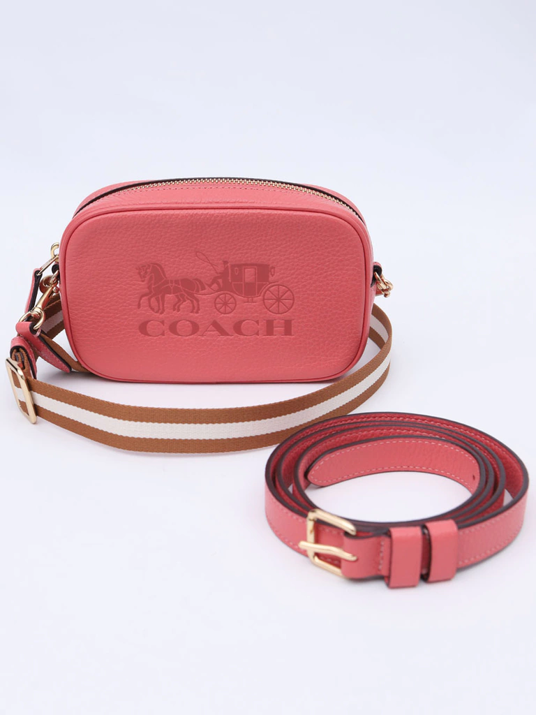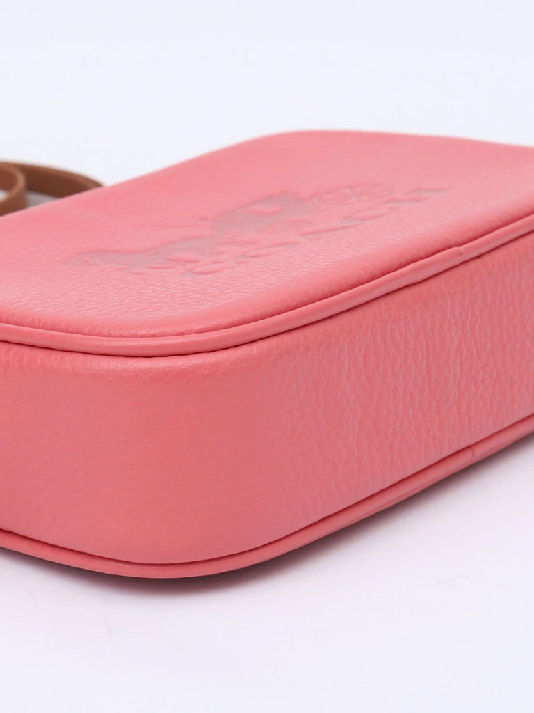 A Bolsa Autêntica Pochete Coach Crossbody Pink é uma pochete que pode ser utilizada como bolsa com duas opções de uso. Apresenta logomarca em relevo gravada no couro, uma cinta em couro e uma alça longa, ambos removíveis e com ajuste de comprimento. Com abertura superior em zíper e espaço interno suficiente para armazenar um celular, documentos, chaves e pequena maquiagem.
