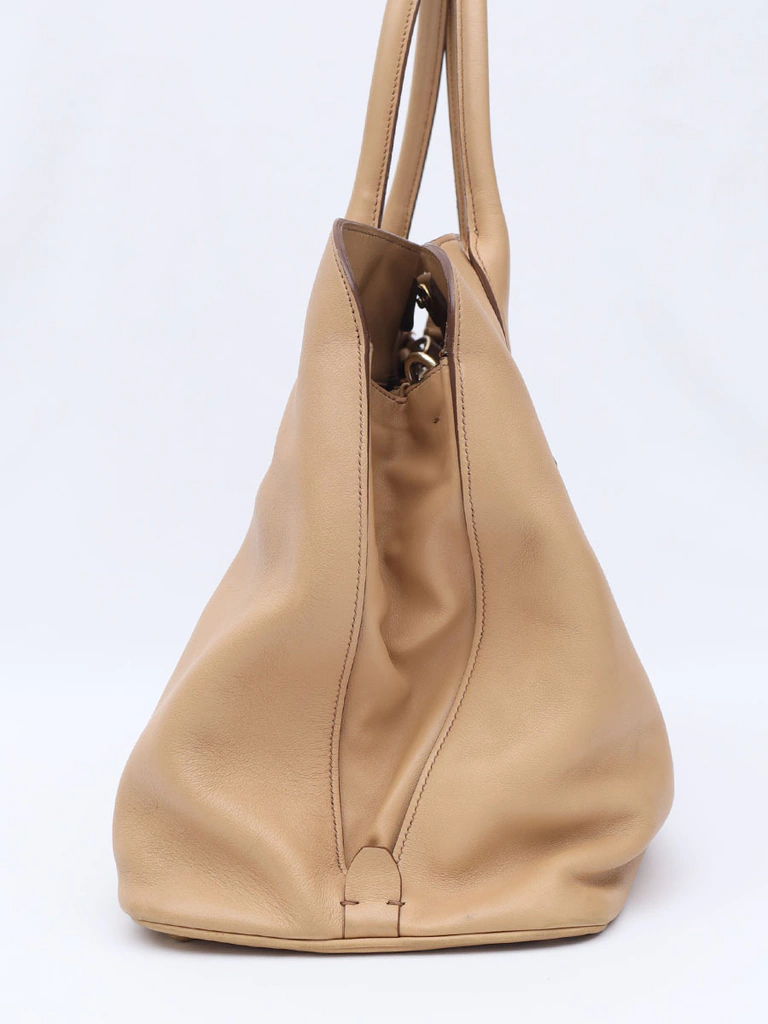 A Bolsa Autêntica Prada Large Shopping Toteé uma bolsa espaçosa e luxuosa para usar todos os dias. Apresenta alças de ombro, uma alça longa removível com ajuste de comprimento, 1 bolso frontal e um excelente espaço interno, com 3 compartimentos principais e 5 bolsos internos para quem adora deixar tudo organizado. Produzida 100% com um luxuoso couro de cordeiro com toque sedoso e macio, ferragens douradas, um bolso frontal e base com apoiadores em metal.