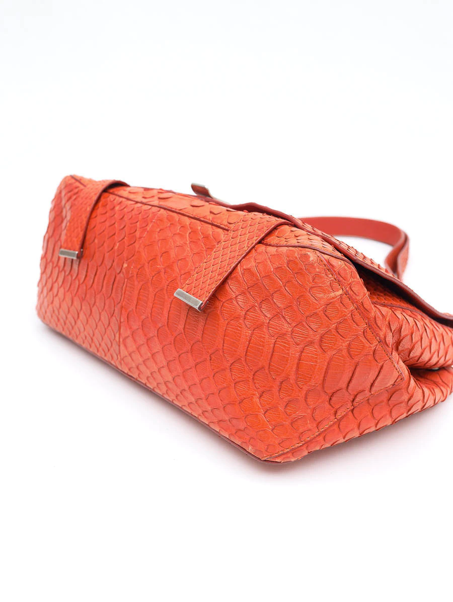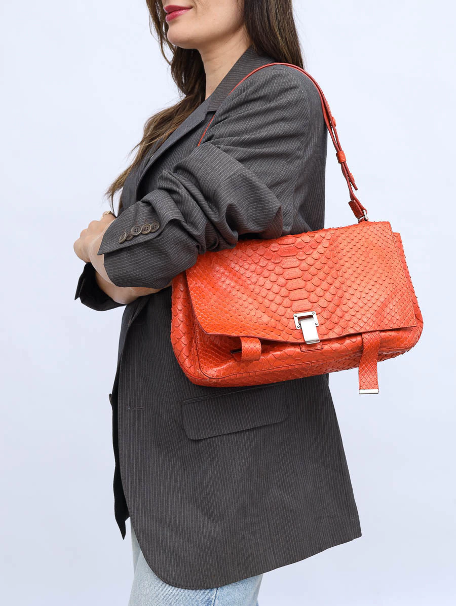 A Bolsa Original Proenza Schouler Courier Python é uma peça sofisticada e ousada, confeccionada em autêntica pele de píton. Seu design compacto e funcional, combinado ao acabamento detalhado e textura única, faz dela o acessório ideal para quem busca exclusividade e elegância em qualquer ocasião.