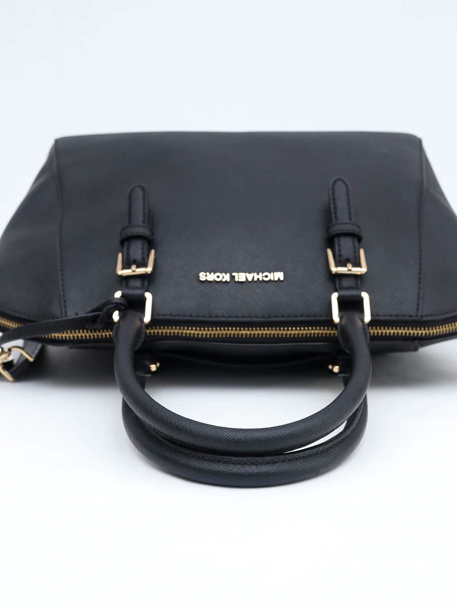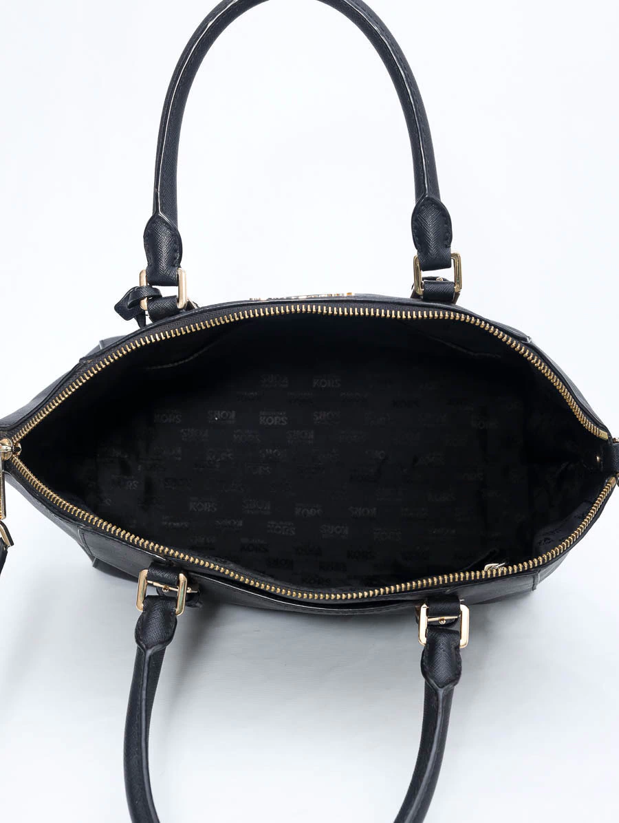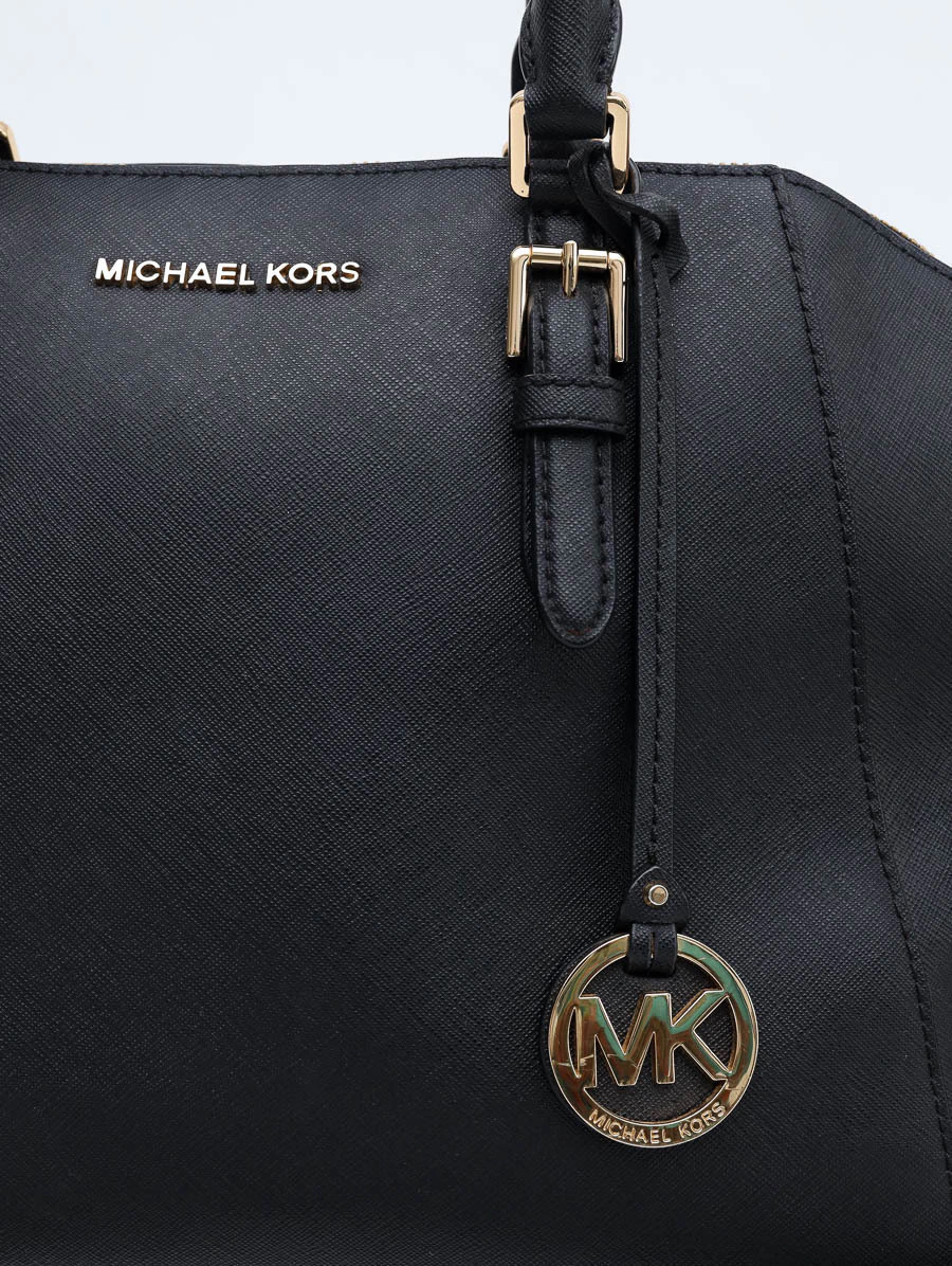 Bolsa Seminova Original Michael Kors Ciara produzida em couro na cor preta. Apresenta duas alças de mão, abertura superior com zíper, um bolso na parte de trás e interior apresenta quatro bolsos abertos e um bolso com zíper.