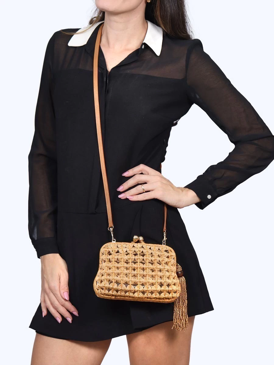 ABolsa Serpui Palha Crossbody é uma bolsa explêndida confeccionada em palha. Apresenta uma alça longa crossbody em couro e uma alça adicional de ombro com elos resinados, abertura superior com fecho de encaixe e um lindo pingente. Uma perfeita opção para ser usado em sua viagem para a praia e no final do ano.