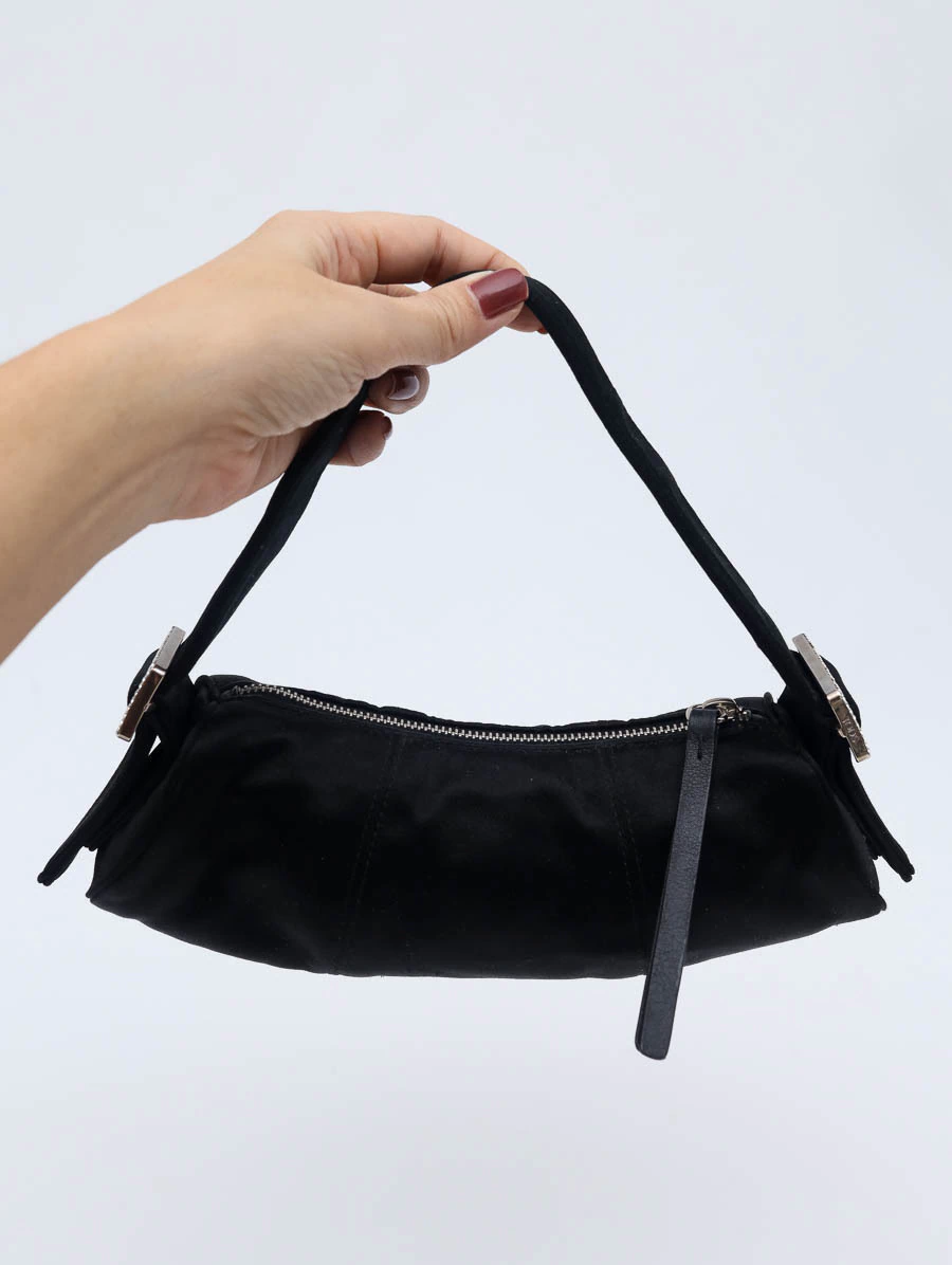 Bolsa Tod'sconfeccionada em tecido estruturado, com acabamento sofisticado e aplicações de brilhantes nas laterais, que adicionam um toque de elegância à peça. Seu design combina funcionalidade e estilo, sendo ideal para compor produções mais refinadas.