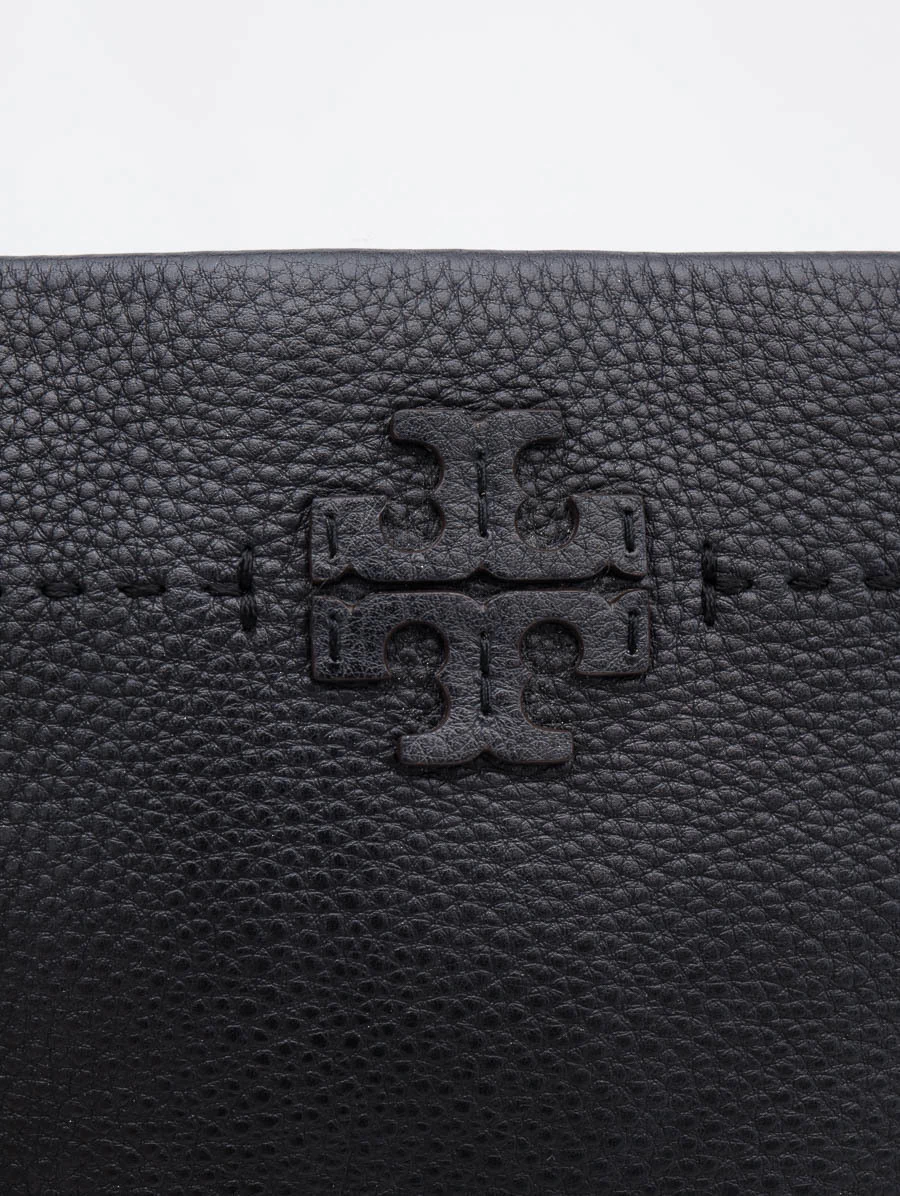 Bolsa Original Tory Burch Mcgraw Leather Crossbody Tote​ produzida em couro na cor preta e metais dourados. Apresenta alça longa com ajuste de comprimento, abertura por zíper e compartimento único com dois bolsos, um bolso aberto e um bolso com zíper.
