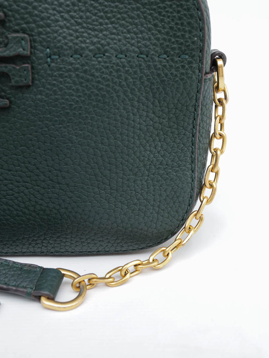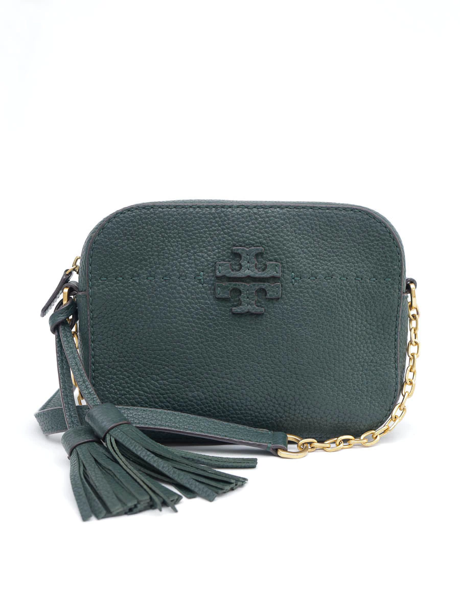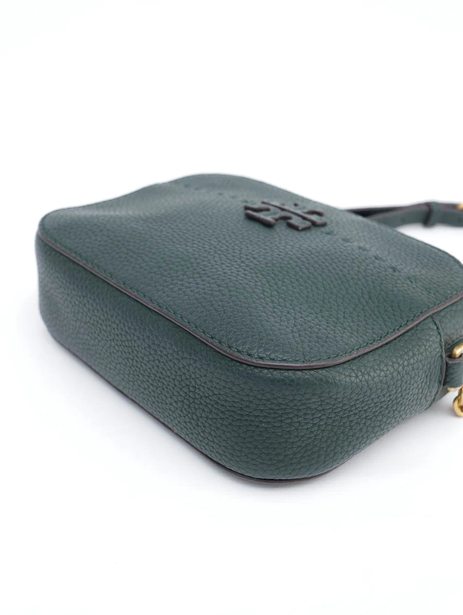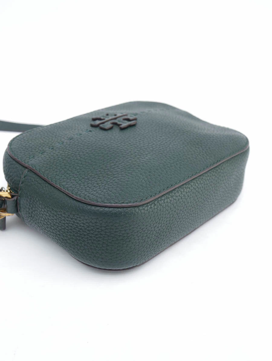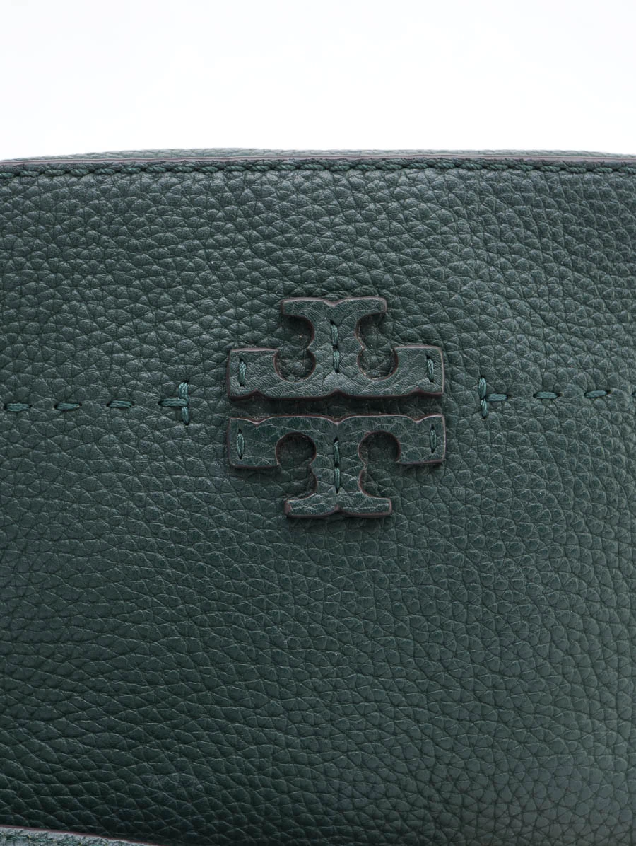 Bolsa Original Tory Burch Verde produzida em couro texturizado na cor verde escuro e ferragens douradas. Apresenta alça longa ajustável, abertura por zíper, compartimento único com um bolso e um bolso aberto na parte externa.