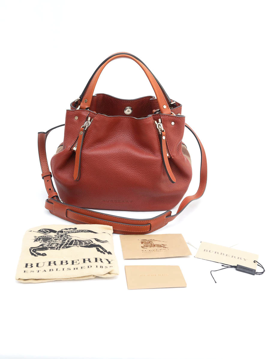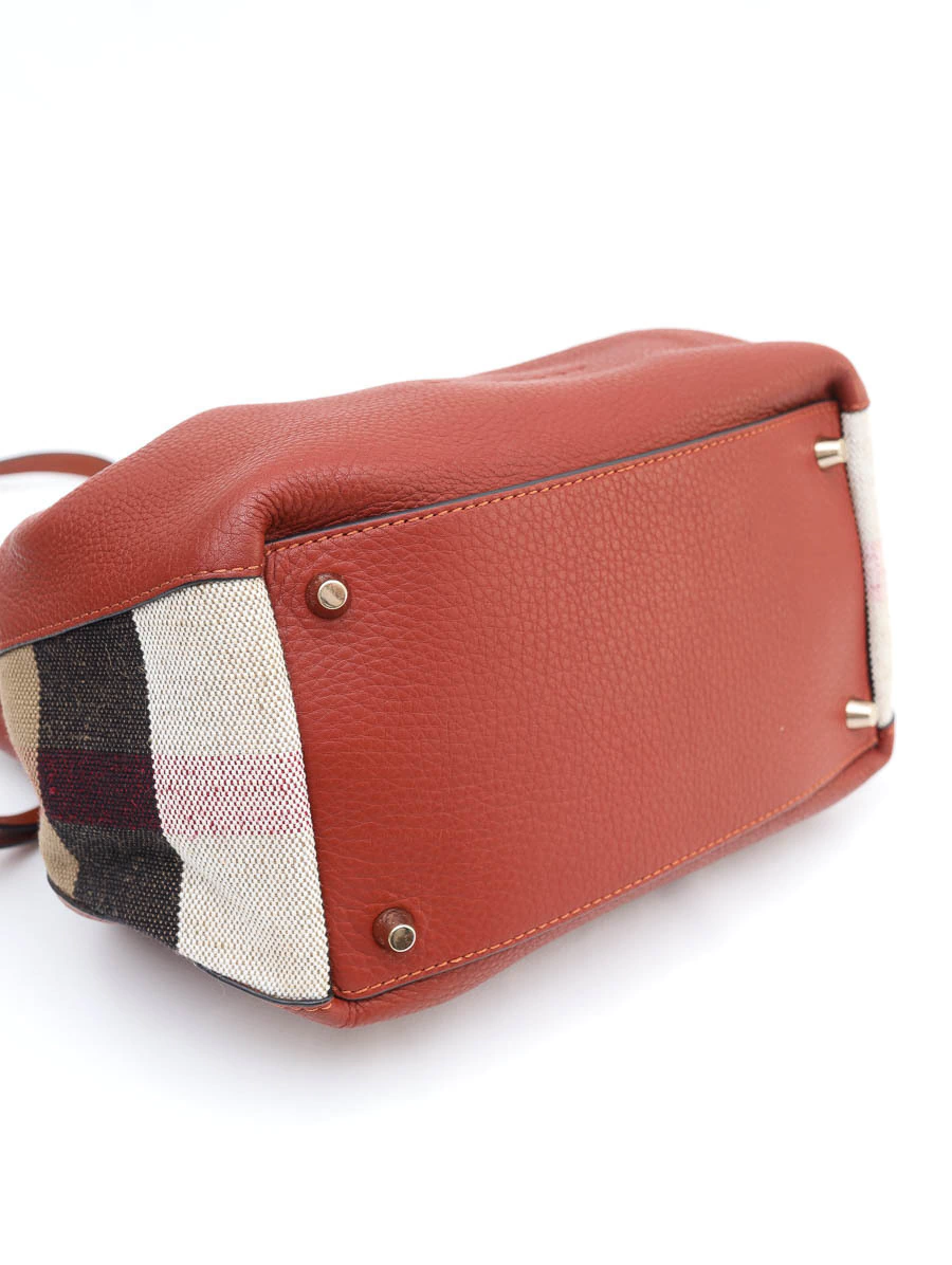 Apresentamos a elegante Bolsa Burberry Maidstone, produzida em couro na cor terracota com detalhes em canvas característicos da marca e metais prateados. Possui abertura superior por fecho de pressão e um interior espaçoso com dois bolsos, sendo um com zíper e outro aberto. Oferece duas alças de mão e uma alça longa ajustável para versatilidade.