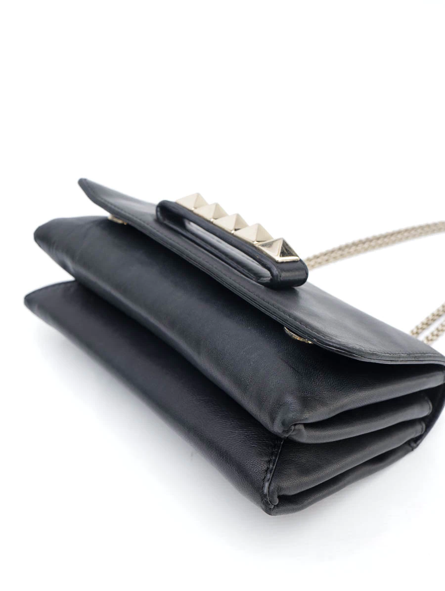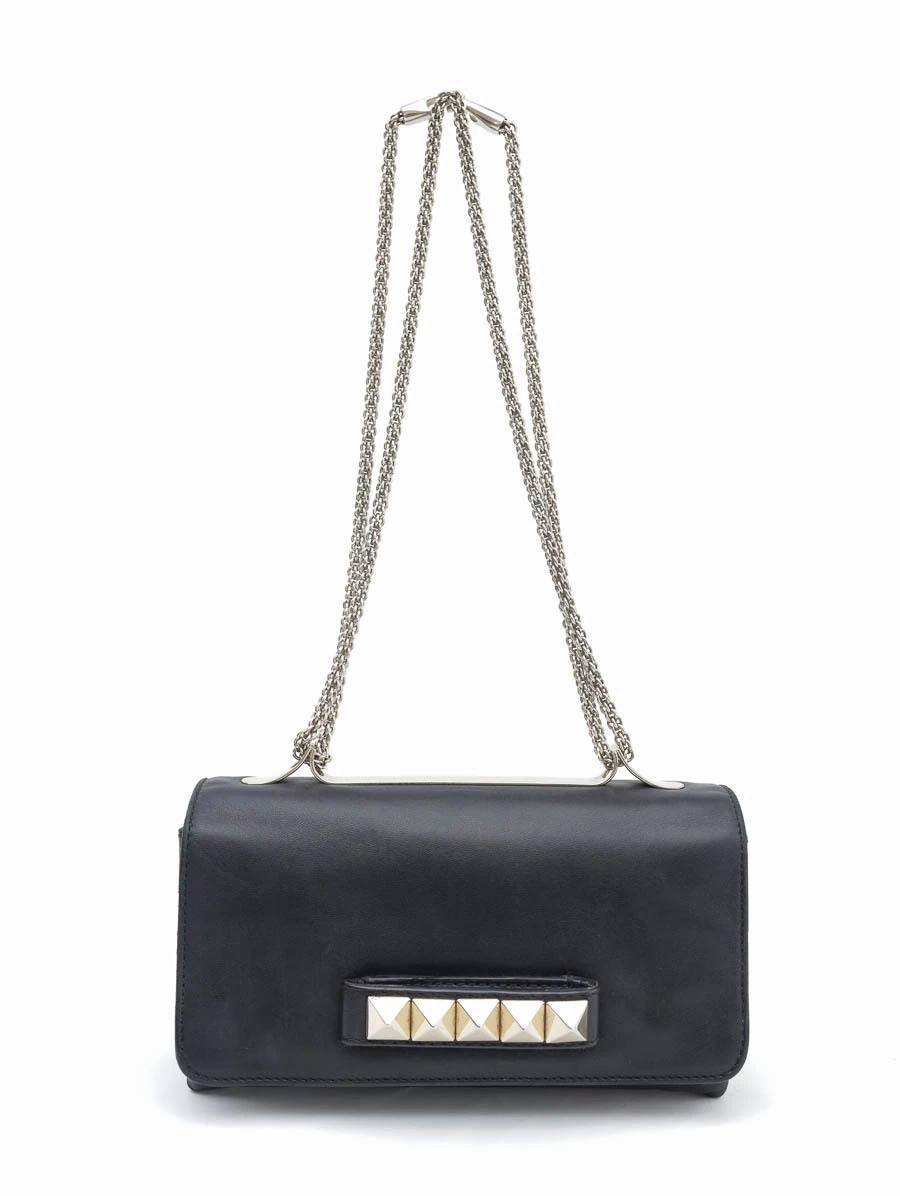 A Bolsa Original Valentino Va Va Voom é uma das criações maravilhosa da marca Valentino. Produzida em couro de bezerro liso e metais dourados, o modelo apresenta lindas tachas spikes na aba frontal e alça em corrente que pode ser usada como alça longa ou com as correntes duplas mais curta. Com abertura flap e fecho magnético, seu interior conta com dois compartimentos e um bolso.