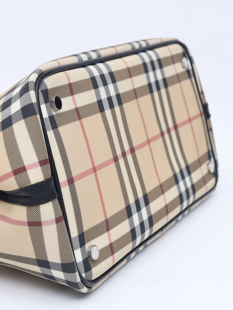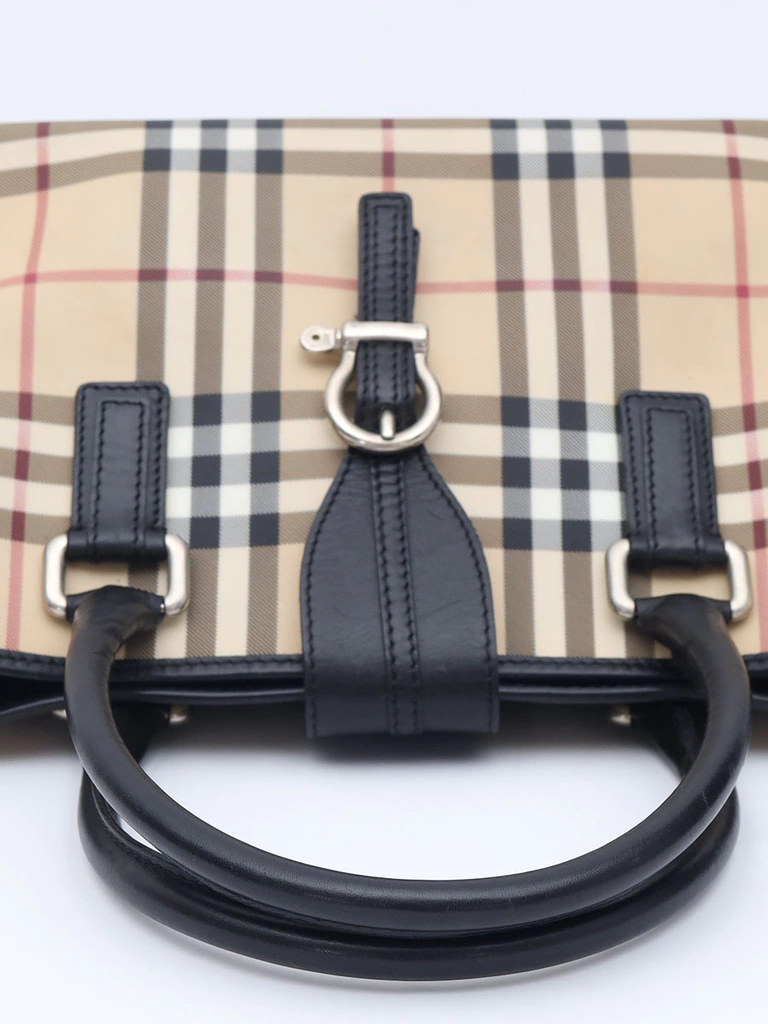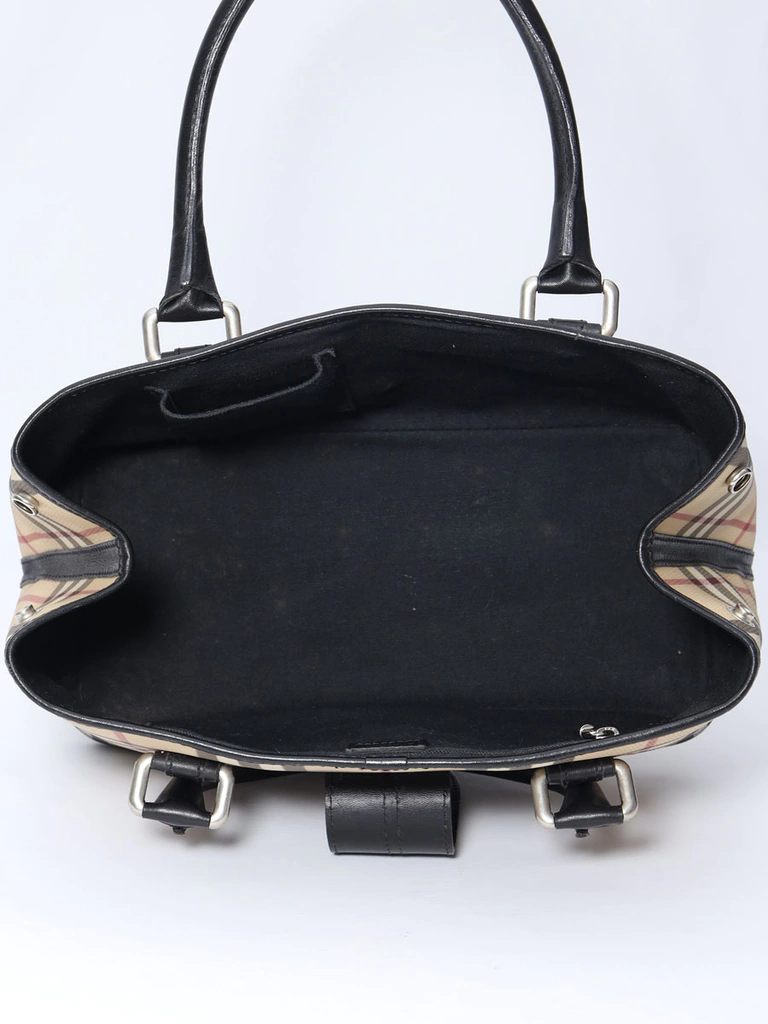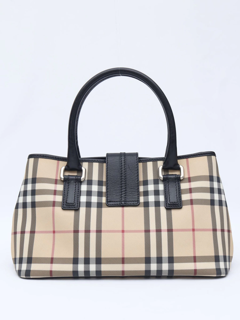 A autêntica Bolsa Burberry Classic Nova Check é uma excelente opção de bolsa média, charmosa e elegante. Com estampa clássica xadrez "Nova Check" em lona sintética de alta durabilidade "canvas" e detalhes em couro preto, possui botões laterais para expansão da capacidade de armazenamento e abertura superior com fechamento através de uma aba de couro com uma fivela decorativa e fecho magnético oculto.