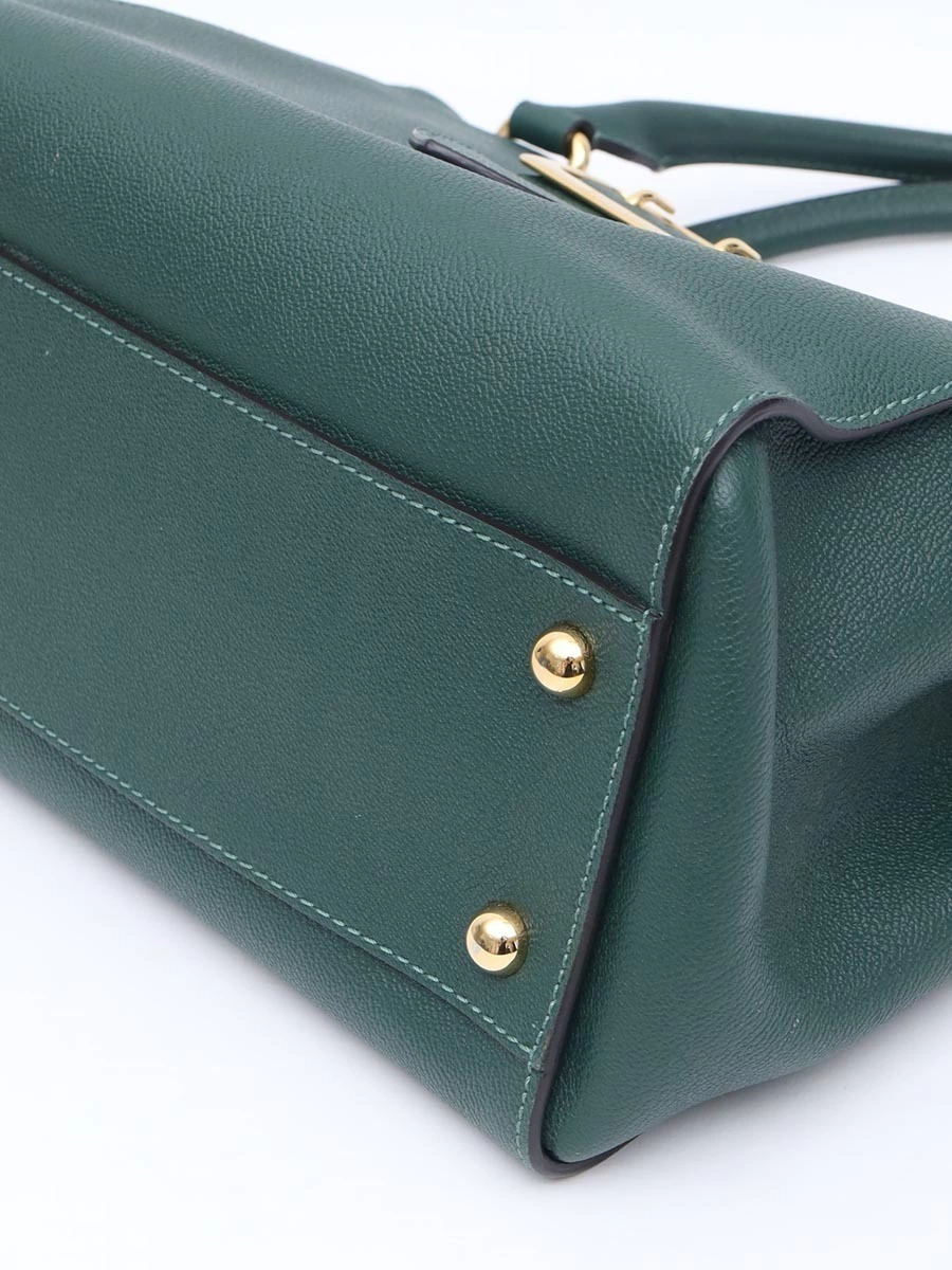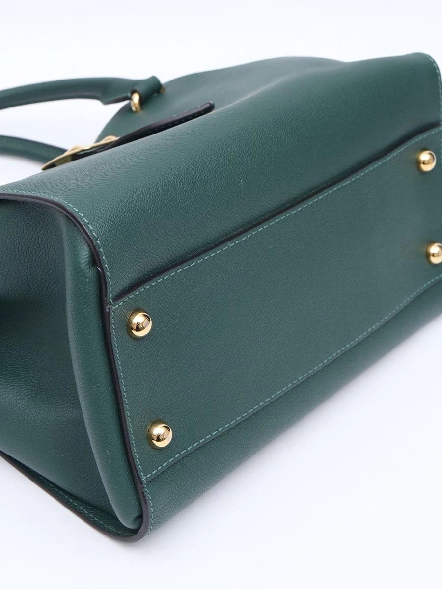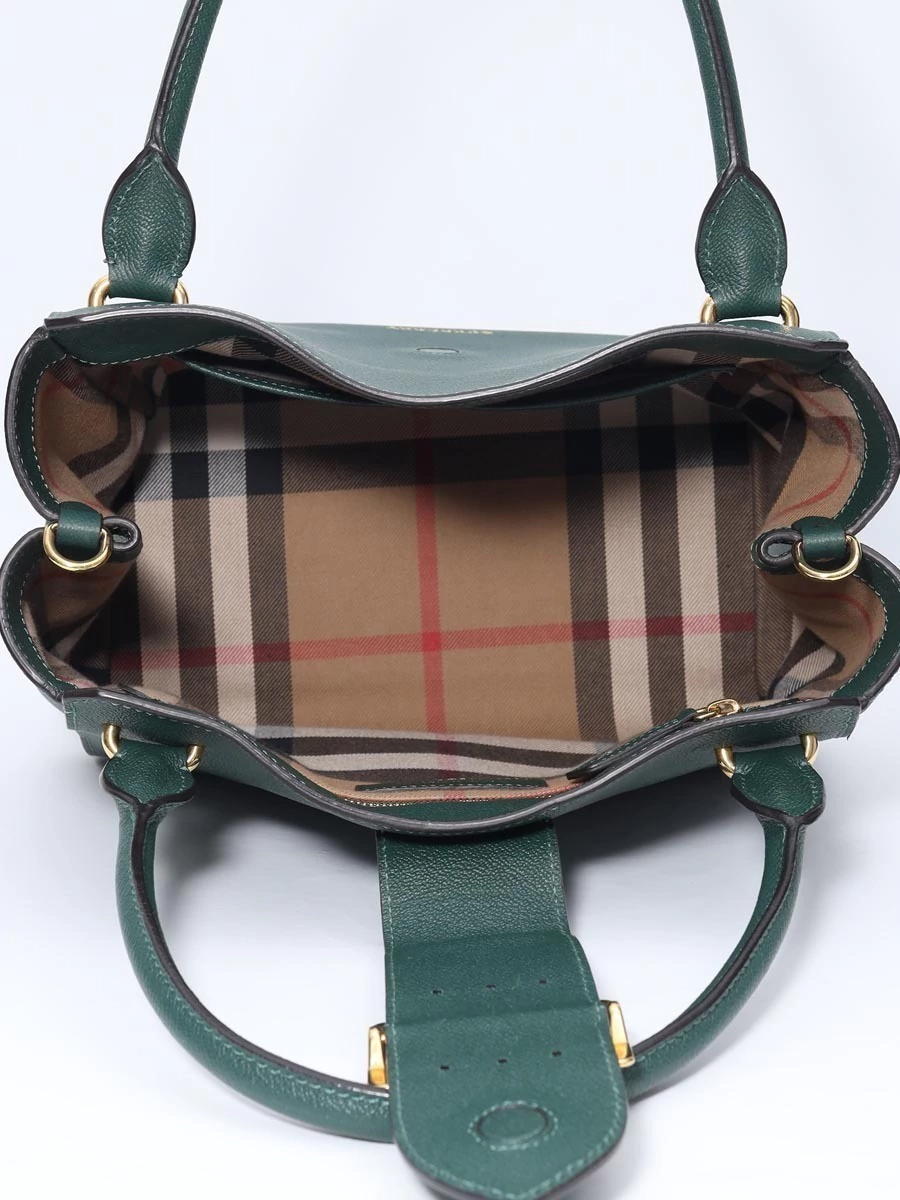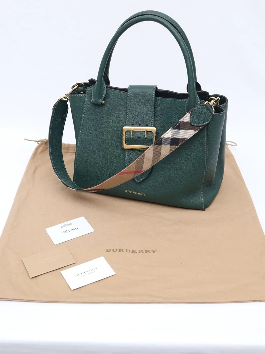 A Bolsa Autêntica Burberry Green Medium Buckle Toteé um modelo maravilhoso que merece estar no seu closet. Espaçosa e elegante, o modelo apresenta couro granulado estruturado, abertura superior com fechamento através de uma aba em couro com fecho magnético e uma fivela decorativa. Com alças de ombro e uma alça longa muito confortável e removível, o modelo apresenta interior revestido em tecido xadrez com três bolsos internos.