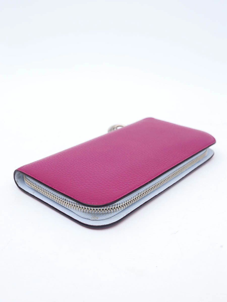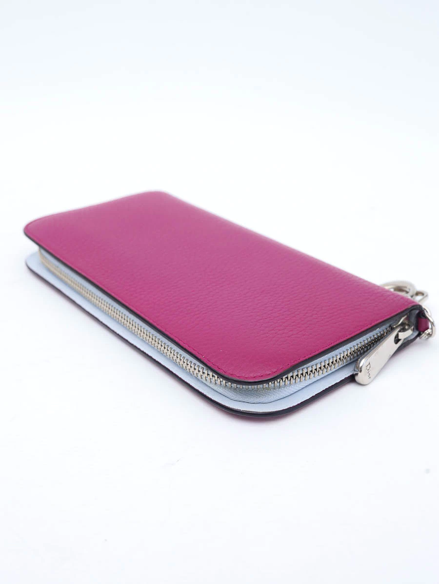 A Carteira Original Dior Cham é um verdadeiro símbolo de elegância e luxo, destacando-se pelo icônico charm Dior com as letras da marca que adiciona um toque de sofisticação. Fabricada em couro luxuoso na vibrante cor pink e abertura com zíper ao redor garante segurança e praticidade, enquanto os metais prateados complementam o design refinado. O interior em couro na delicada cor azul bebê oferece um contraste elegante e apresenta múltiplos compartimentos e seis slots para cartões, proporcionando espaço suficiente para manter todos os seus essenciais organizados.