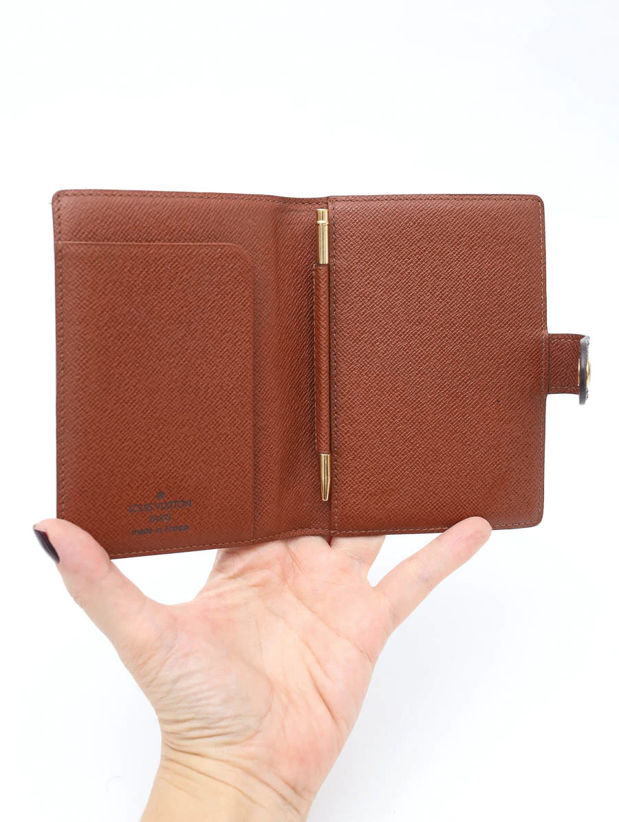 Carteira Louis Vuitton Vintage Monograma confeccionada em canvas com estampa monograma, metais dourados e fecho de pressão. Apresenta interior em couro com aba para organização de itens e um espaço para porta caneta.