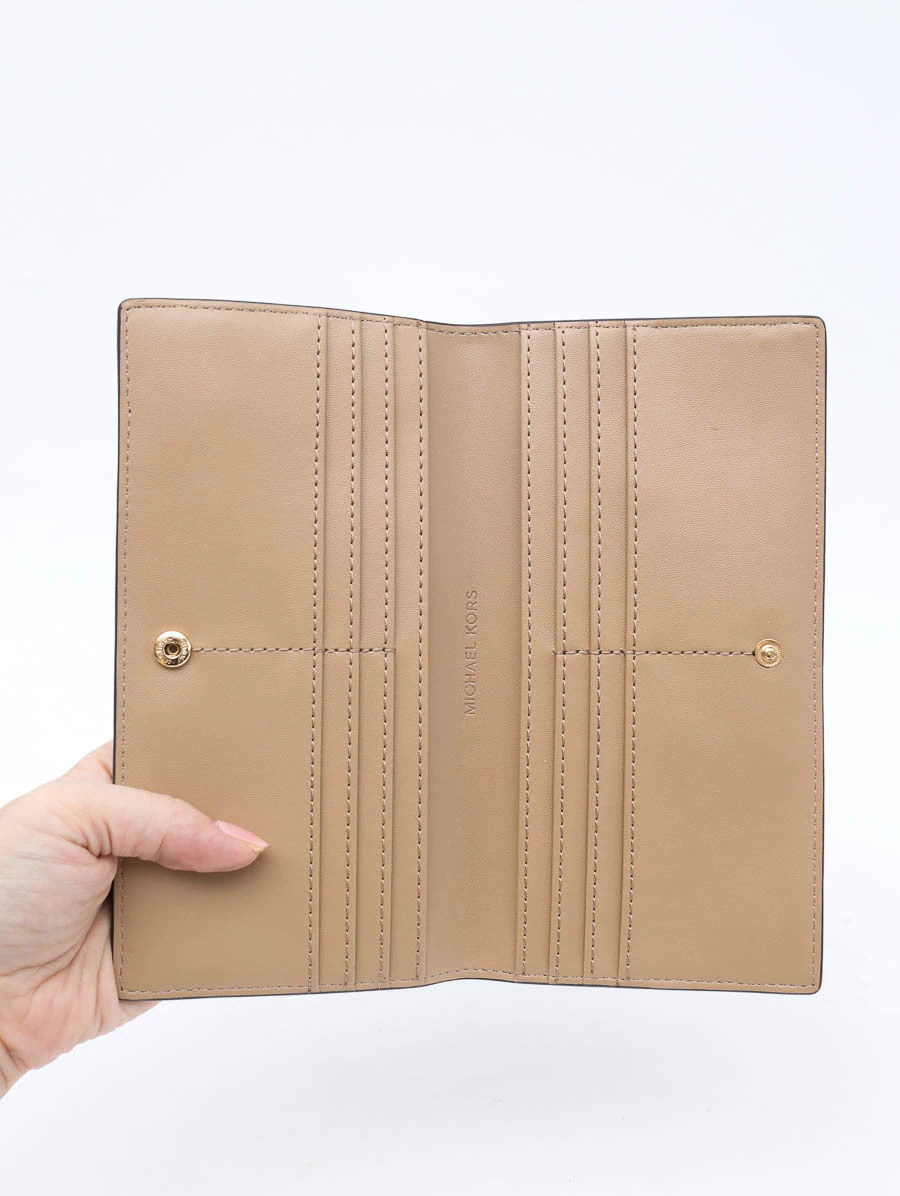 A Carteira Original Michael Kors Jet Set é perfeita para quem busca organização e estilo. Com um design elegante, ela é feita em couro granulado e abertura com botão de pressão que facilita o acesso ao interior. Interior em couro com seis slots para cartões e dois compartimentos para documentos ou cédulas. Além disso, possui um bolso com zíper externo para itens de acesso rápido. A tira de couro com o logo MK em dourado adiciona um toque de elegância.