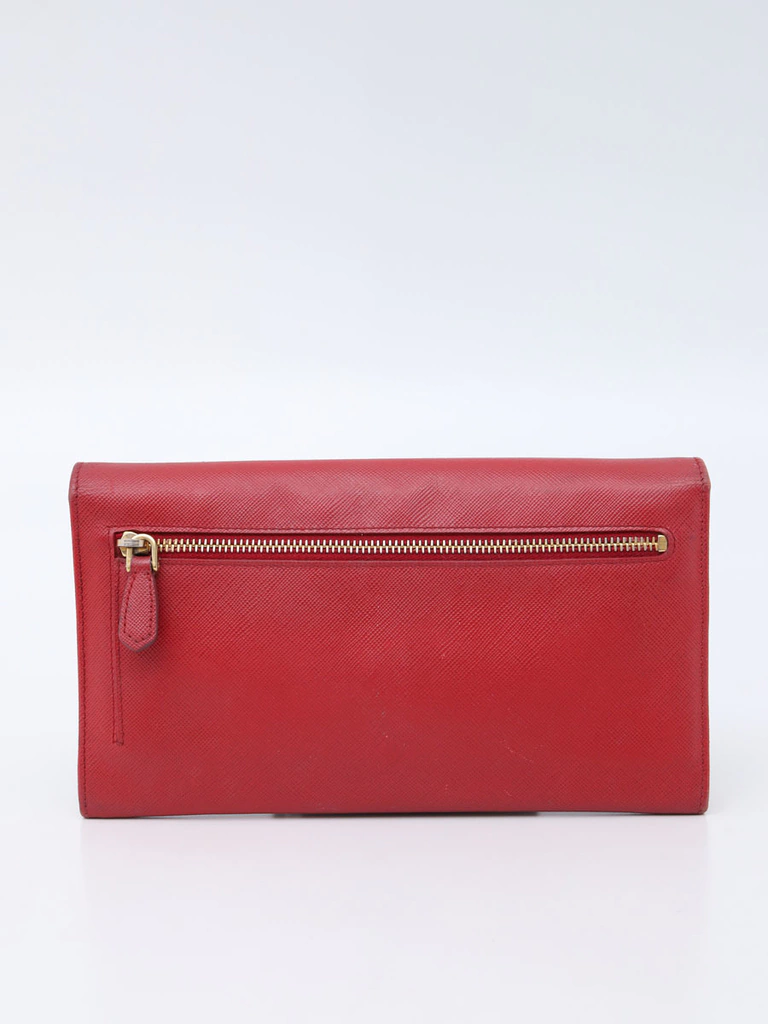 Carteira Saffiano Metal Continental produzida 100% em couro Saffiano na cor "Prada Fuoco" (vermelho). Apresenta tamanho grande, abertura "flap" com dois botões de pressão e diversos compartimentos em seu interior, perfeita para organizartodos os seus pertences. São 6 espaços para cartões, espaço para armazenar moedas com zíper na parte de trás, 4 compartimentos internos, sendo um central com zíper. Não perca a oportunidade de comprar esse linda carteira super versátil e muito prática.