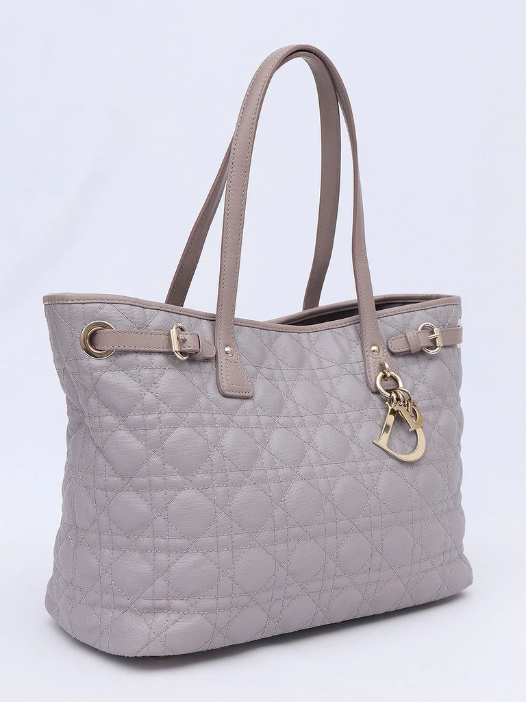 Bolsa OriginalChristian Dior Small Panarea Tote produzida em material sintético canvas cinza claro e pespontos no estilo clássico Dior Cannage. Uma bolsa modelo shopping ideal para ser usada todos os dias! Apresenta uma prática abertura superior através de fecho magnético de fácil acesso e confortáveis alças de ombro em couro. Seu espaçoso interior apresenta um bolso grande com fechamento com zíper e dois bolsos menores abertos. Elegante, prática e luxuosa! Aproveite e tenha essa bolsa Dior em seu closet agora mesmo.