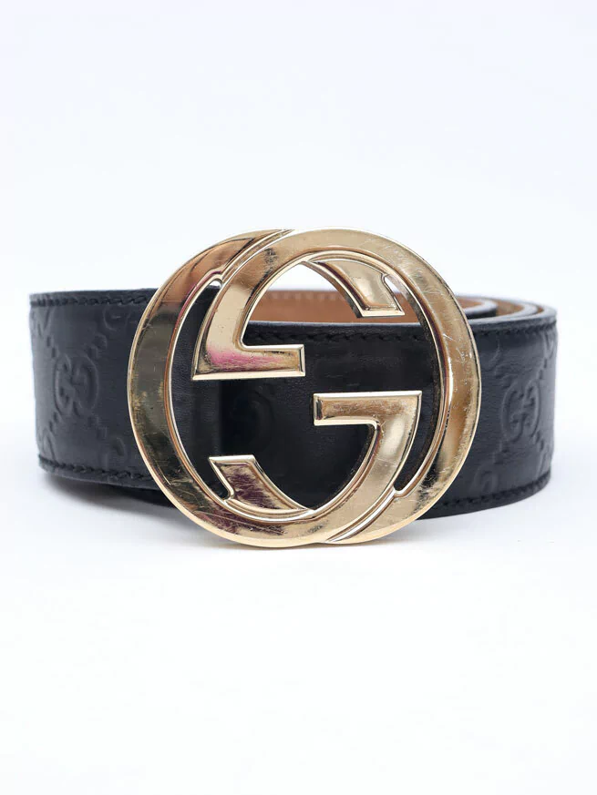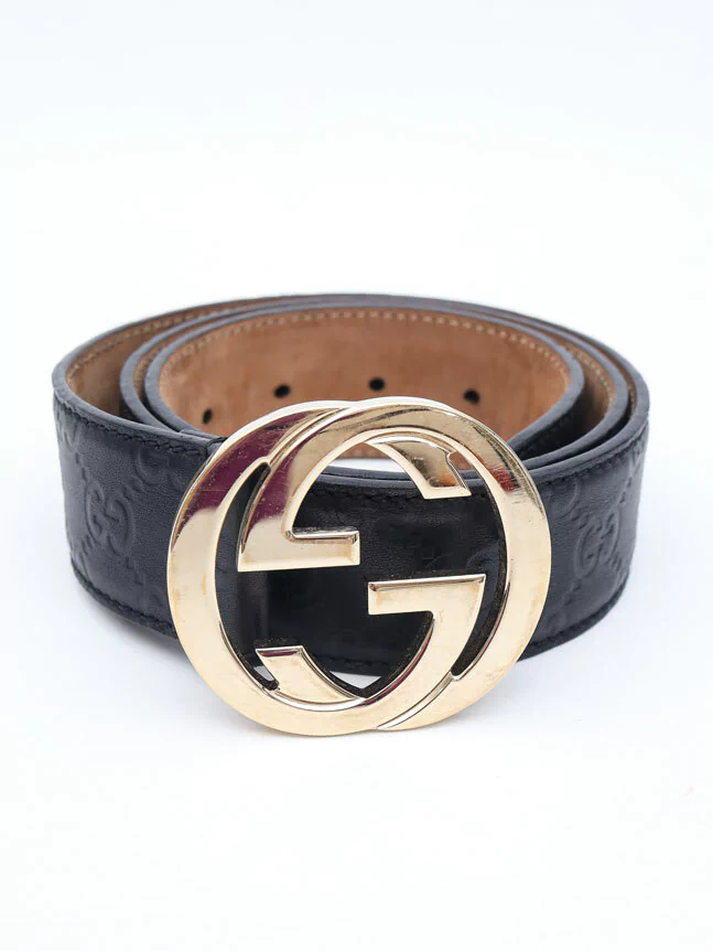 Cinto Gucci Interlocking Buckle Preto - TAM 85